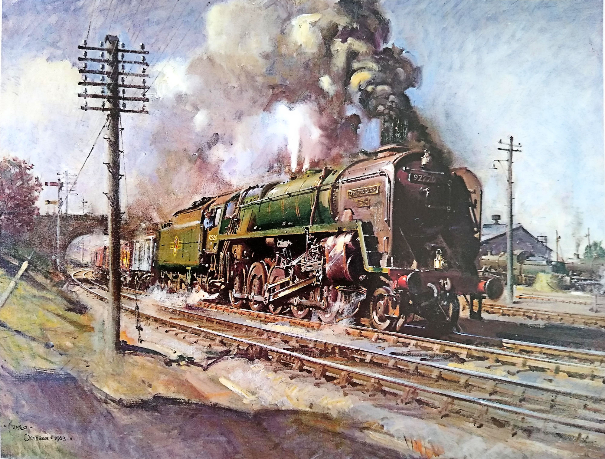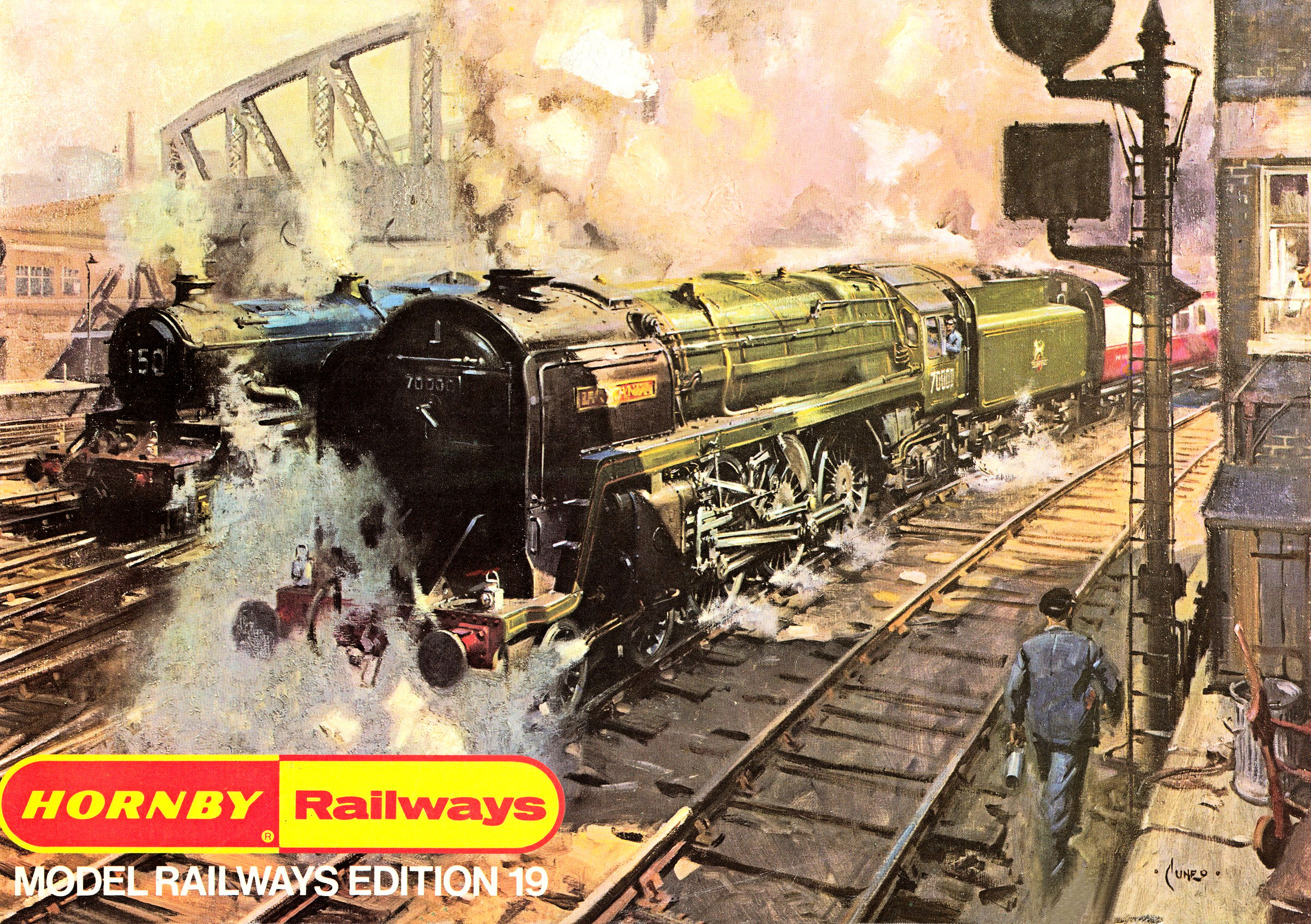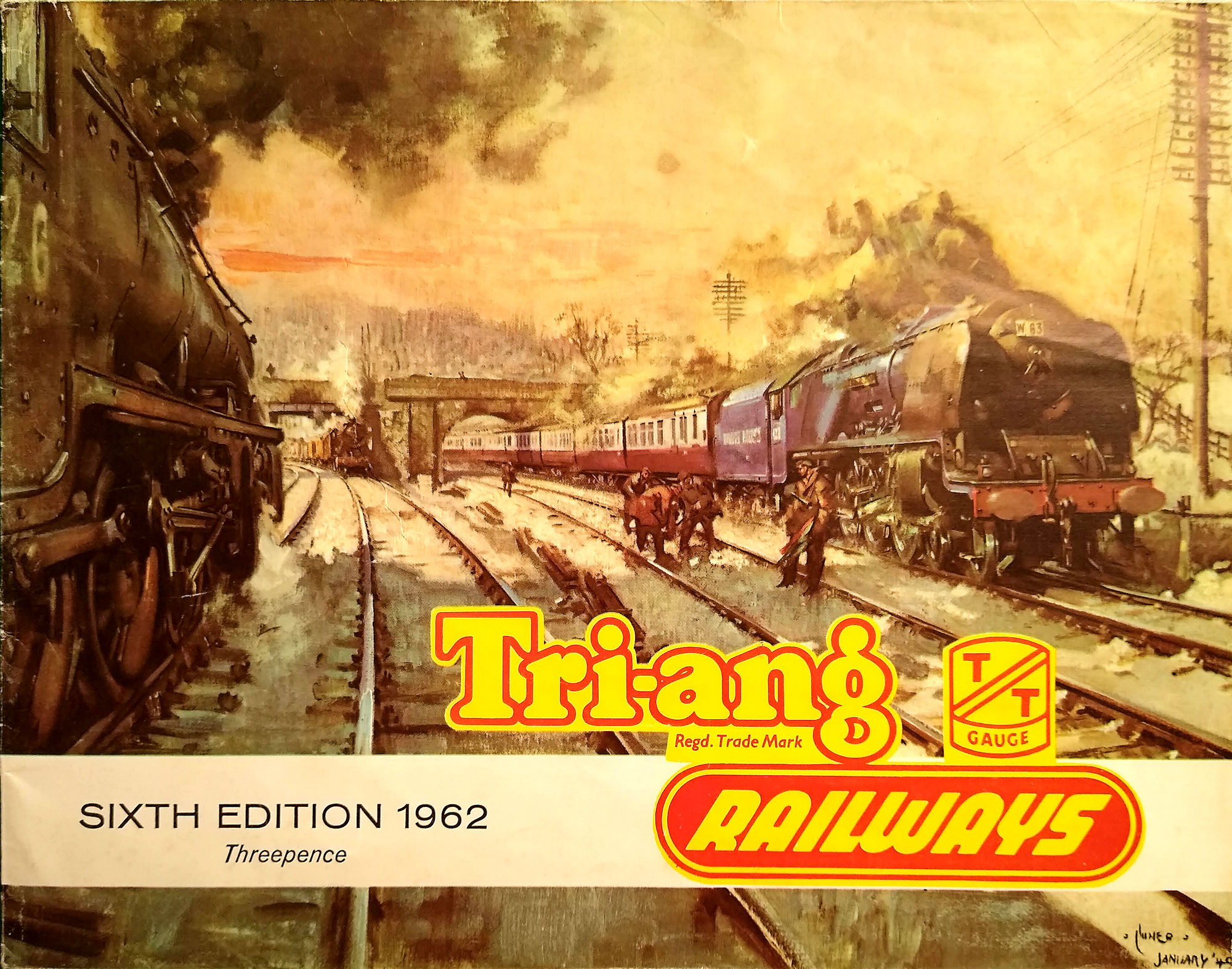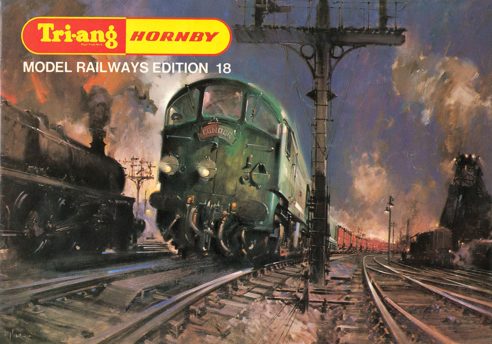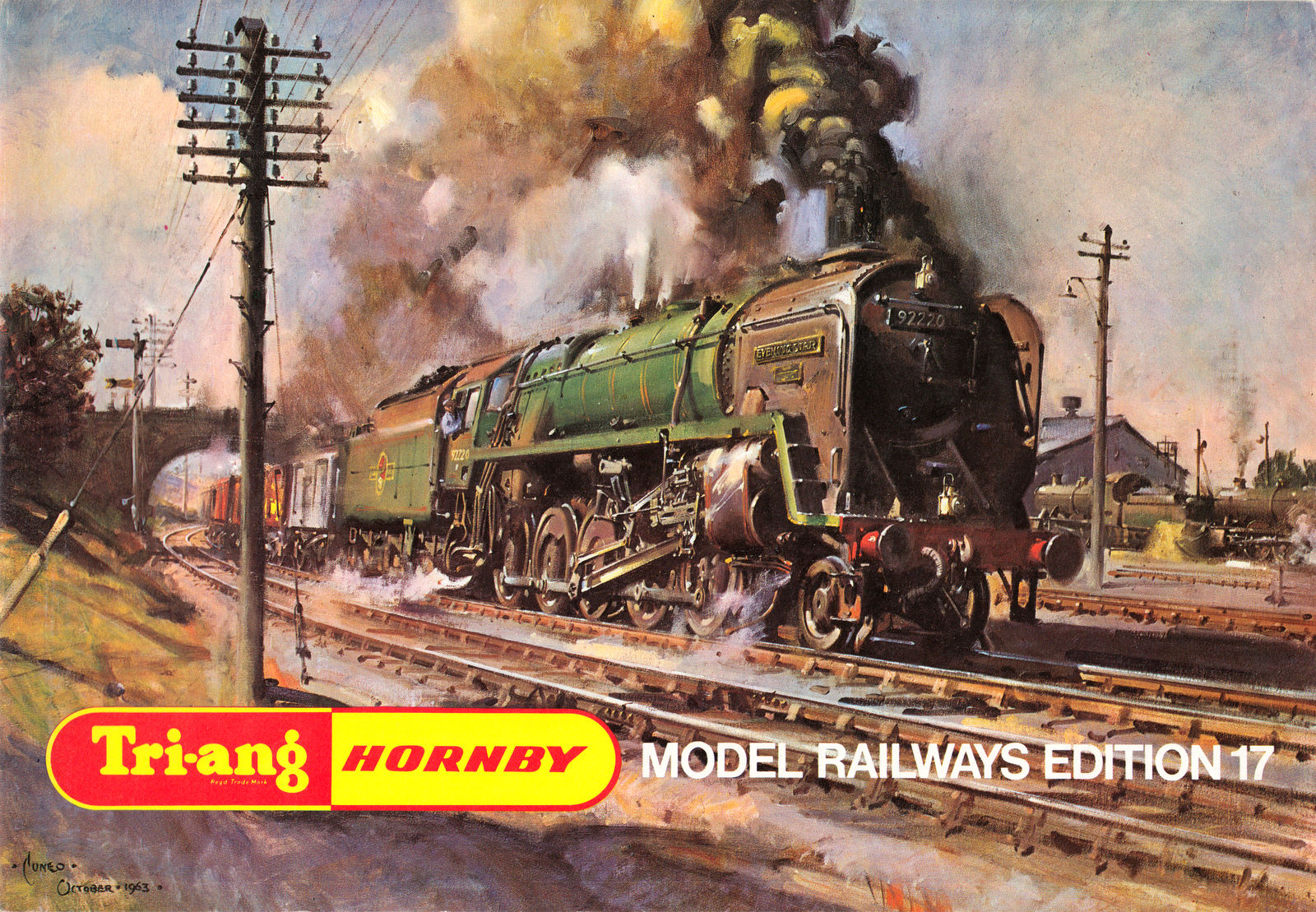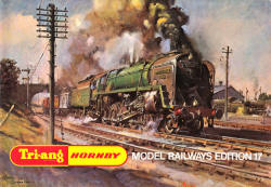 1971 17th Edition, the last of the true Tri-ang/Tri-ang-HORNBY catalogues the painting was 'Evening Star at Full Speed'