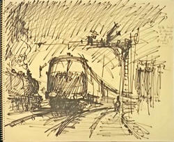 Saltash Station. The painting was titled 'Class 4 diesel-electric at Saltash' Rovex Commission |