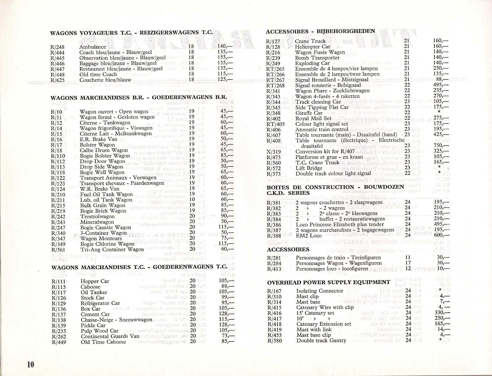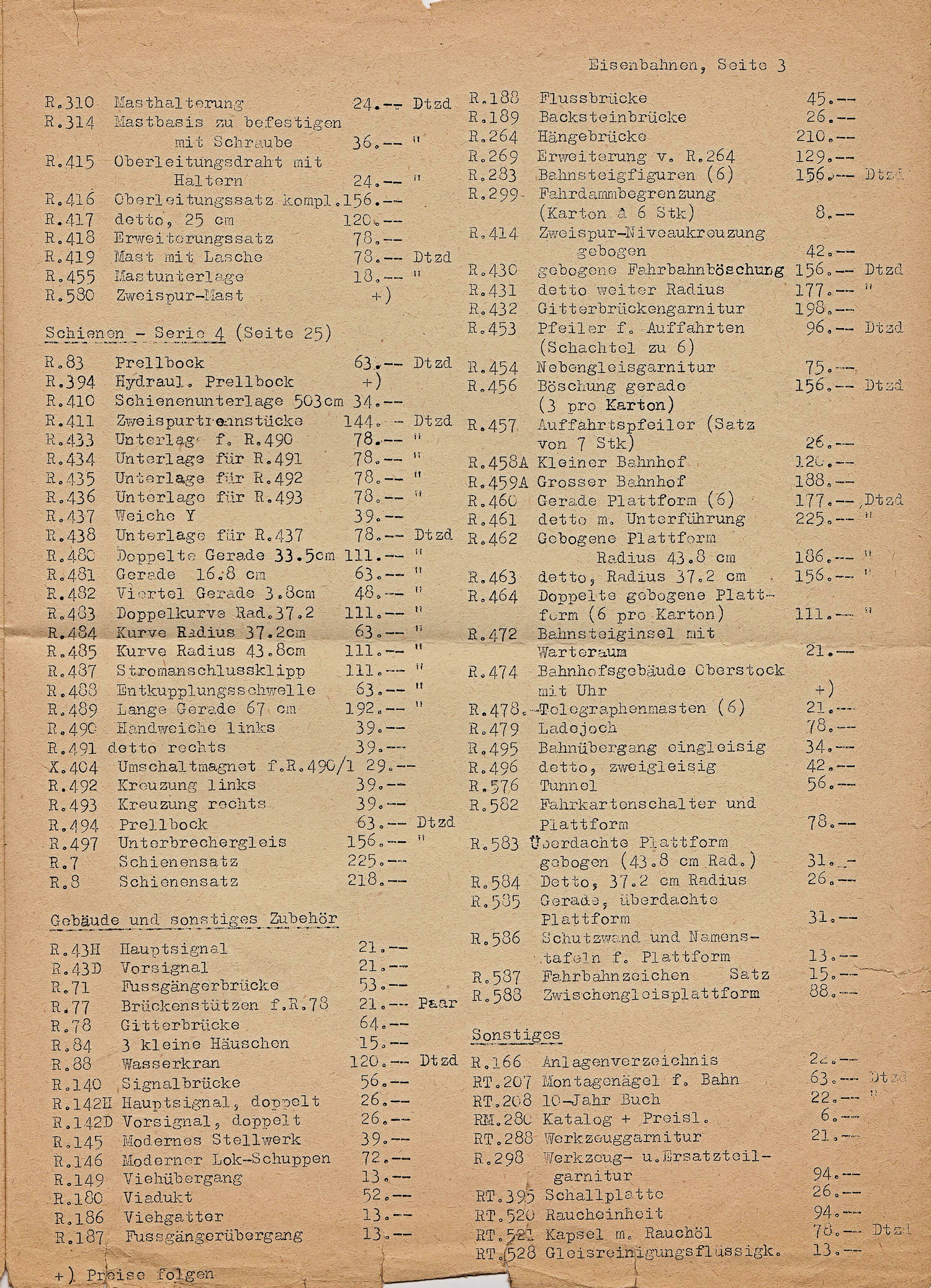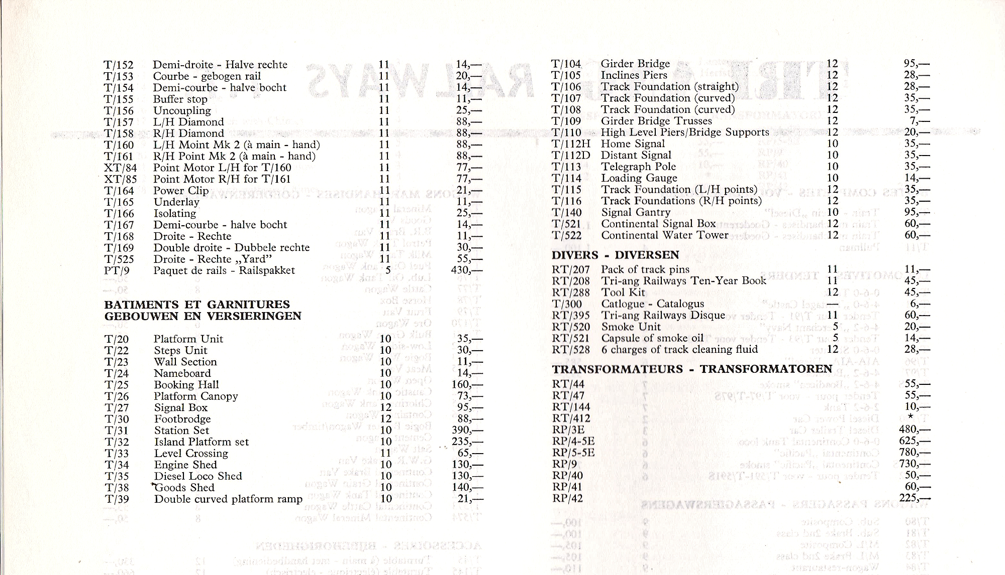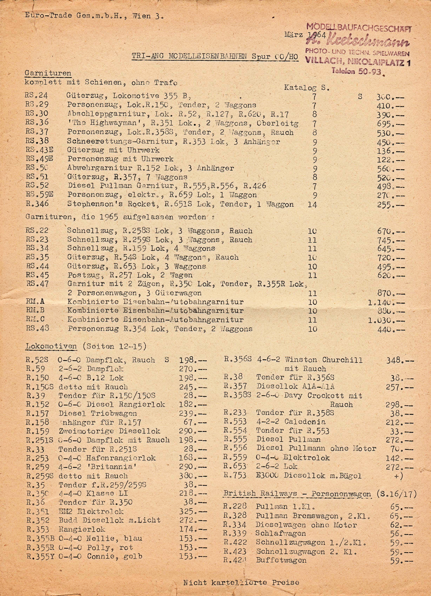 Austrian Tri-ang price list from 1964