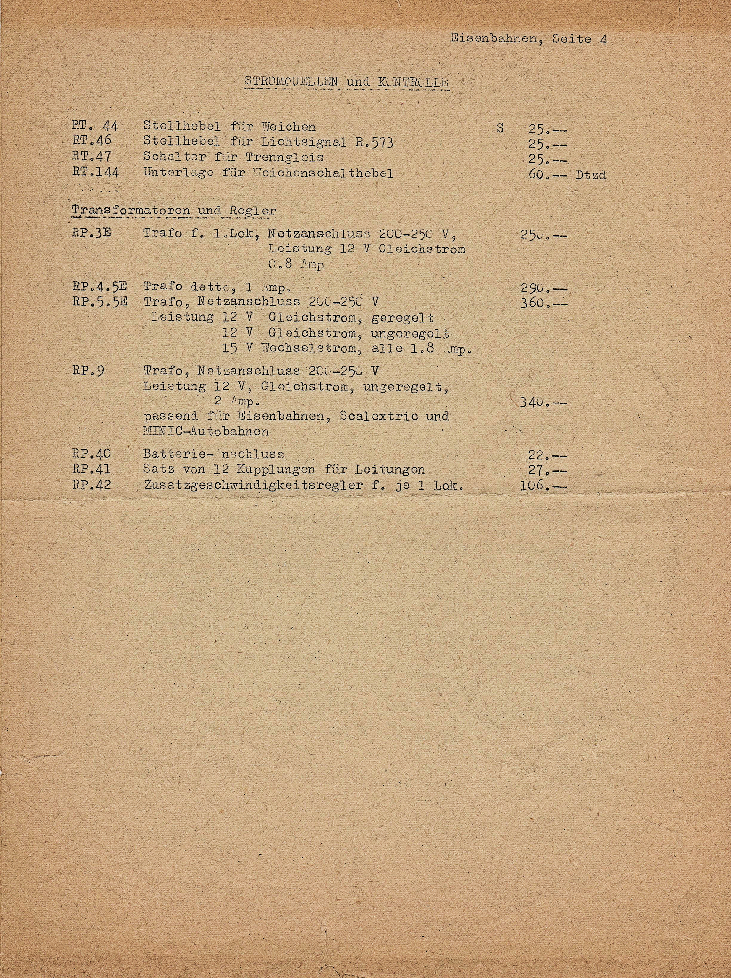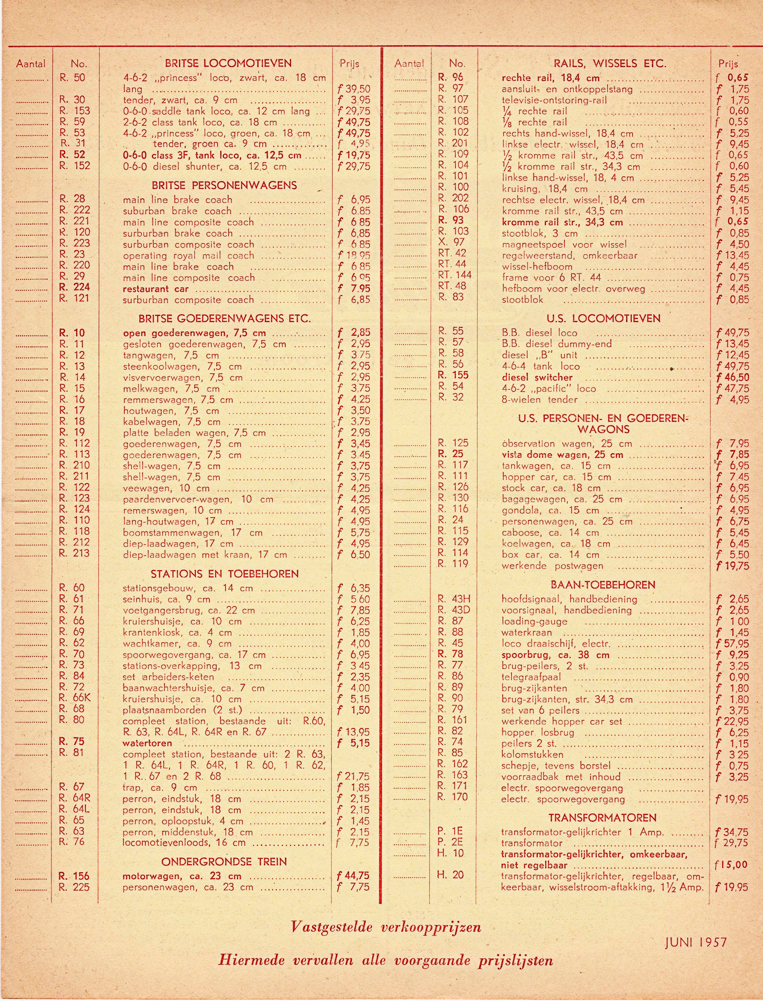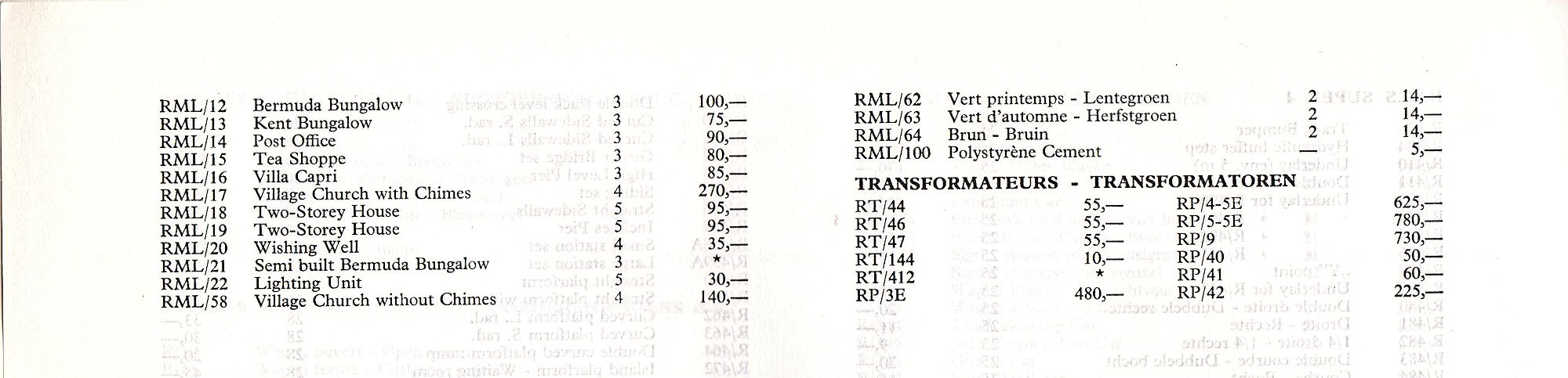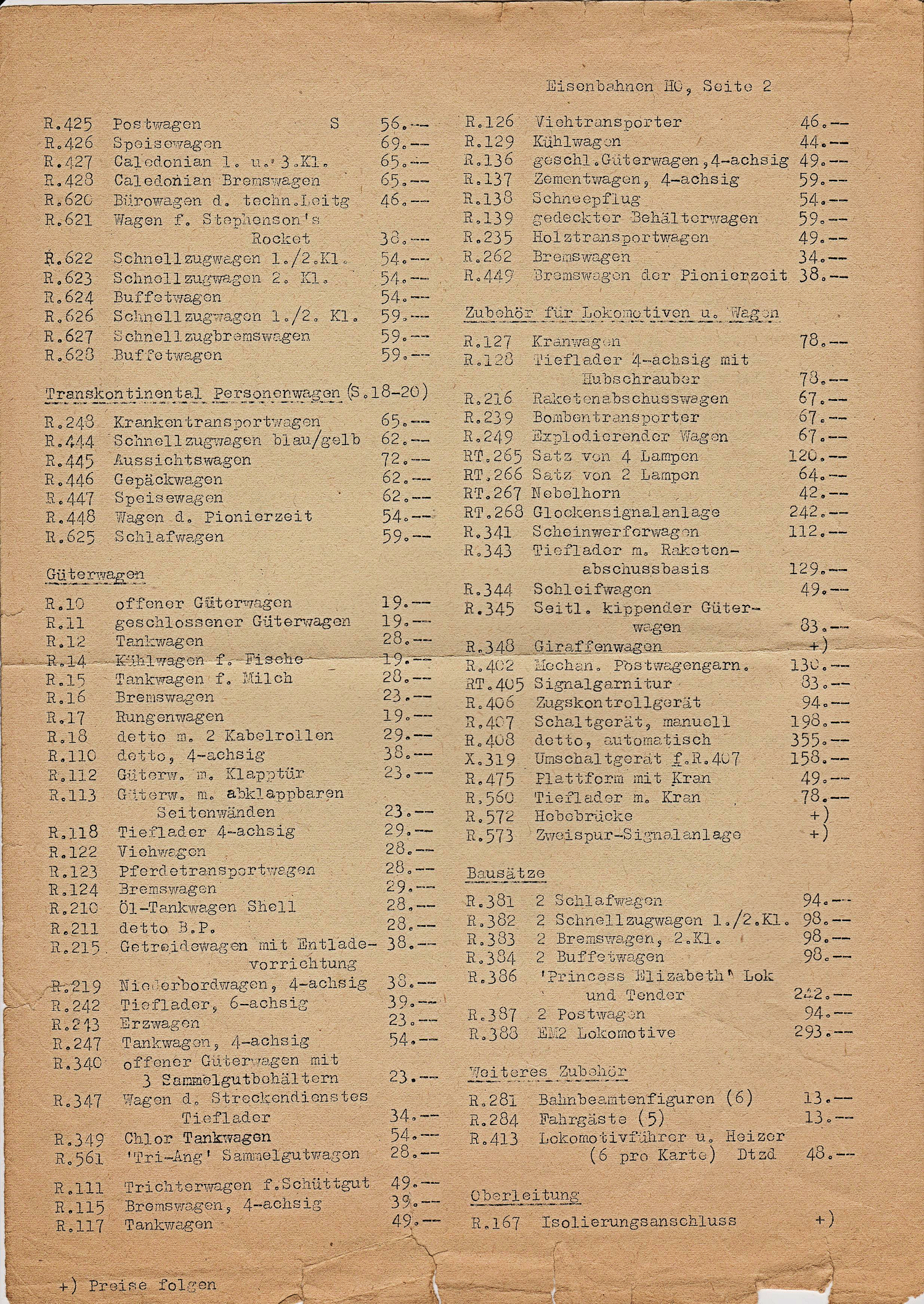 Austrian Tri-ang price list from 1964