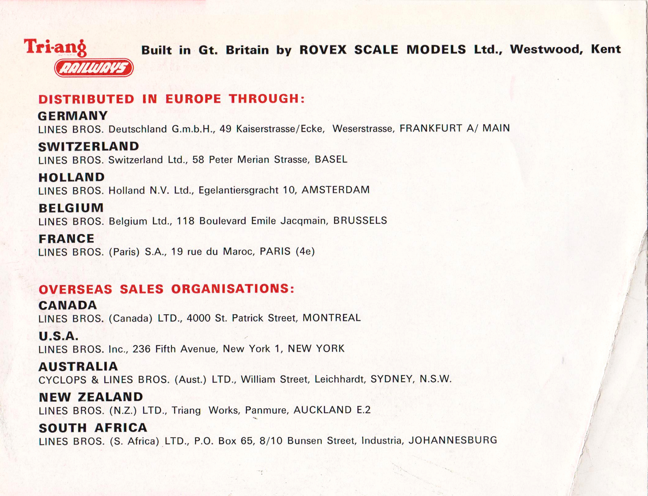 Tri-ang LeafletsAustria, Belgium, Holland and All Countries