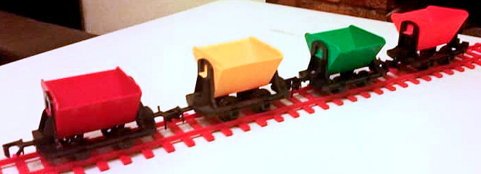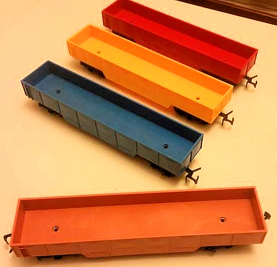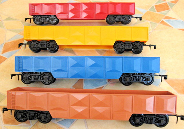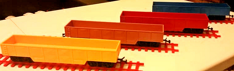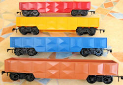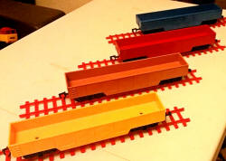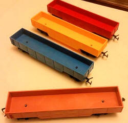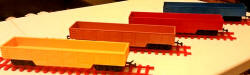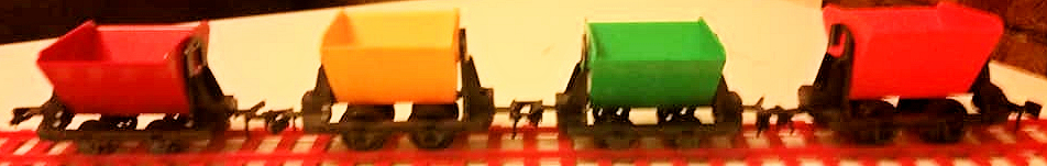 | RV.258 Open Wagons including unusual colours from the AMF set and a grey one from the Jumbo Set | ||