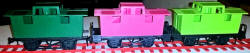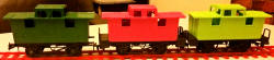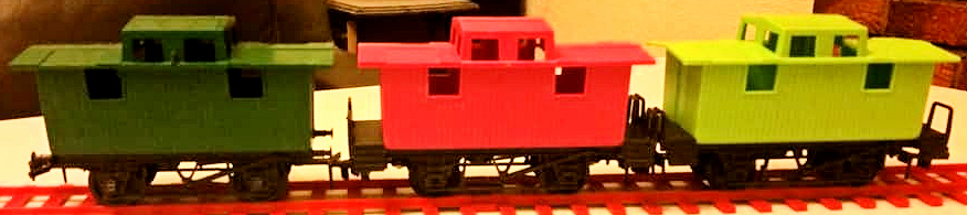 | RV.298 Caboose the two right hand ones are the AMF Set versions with added verandas at each end | ||