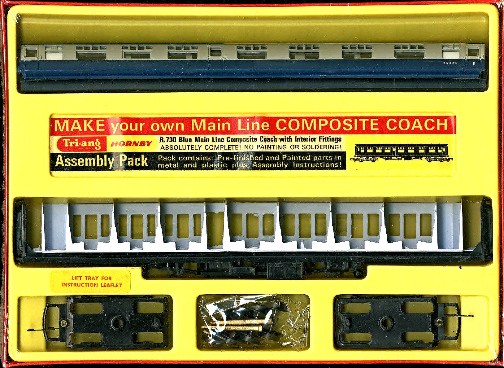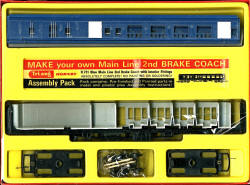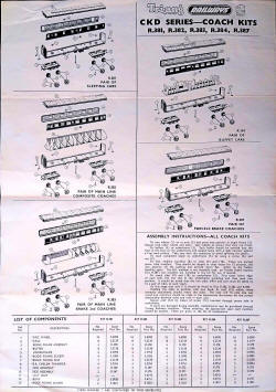 | In 1966 the CKD range changed. The coaches were now BR Blue and the whole range was available in new packaging with celophane wrapping. The coaches now came as single items per set rather than the two that were in the previous lift off lid boxes. | ||
