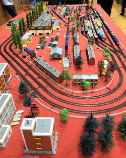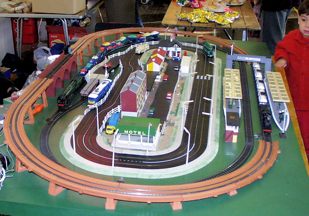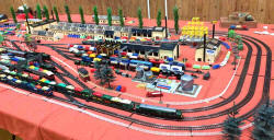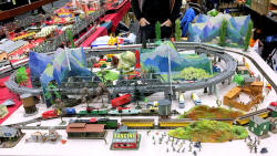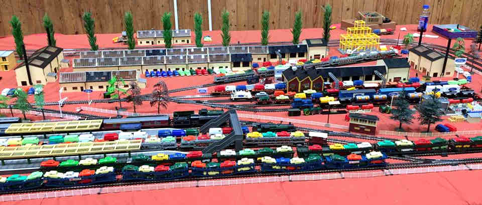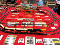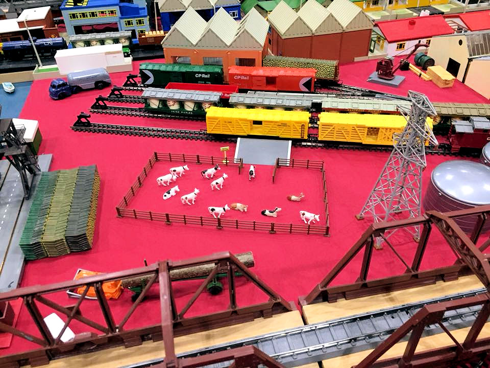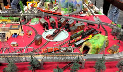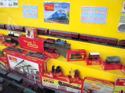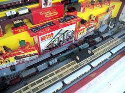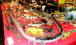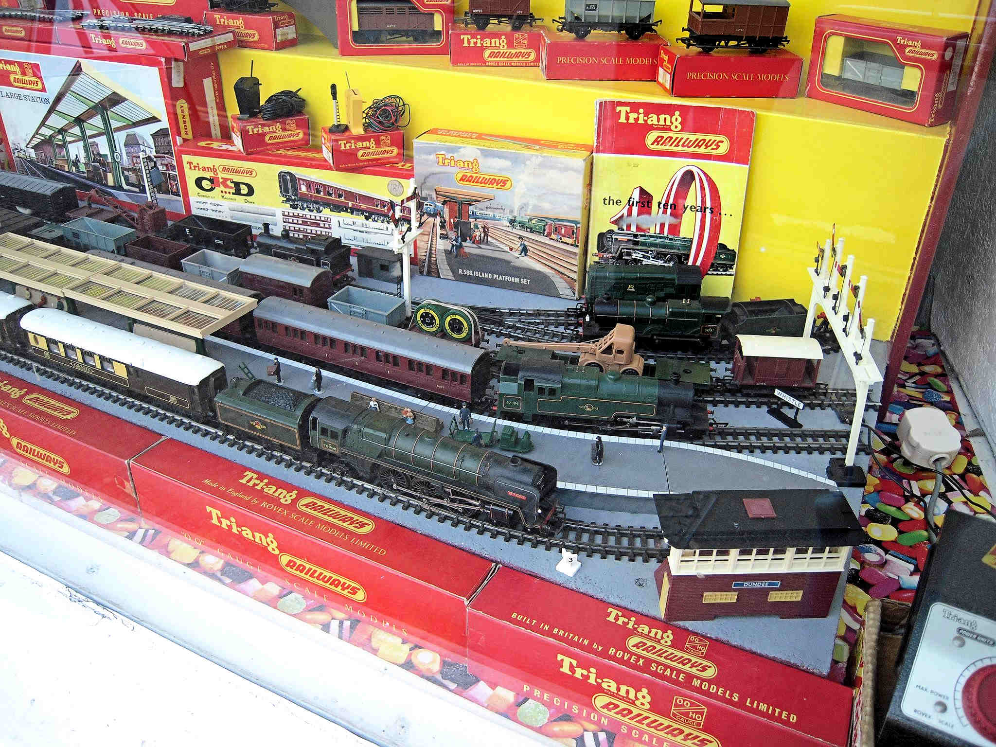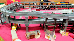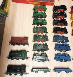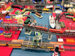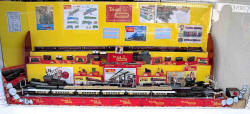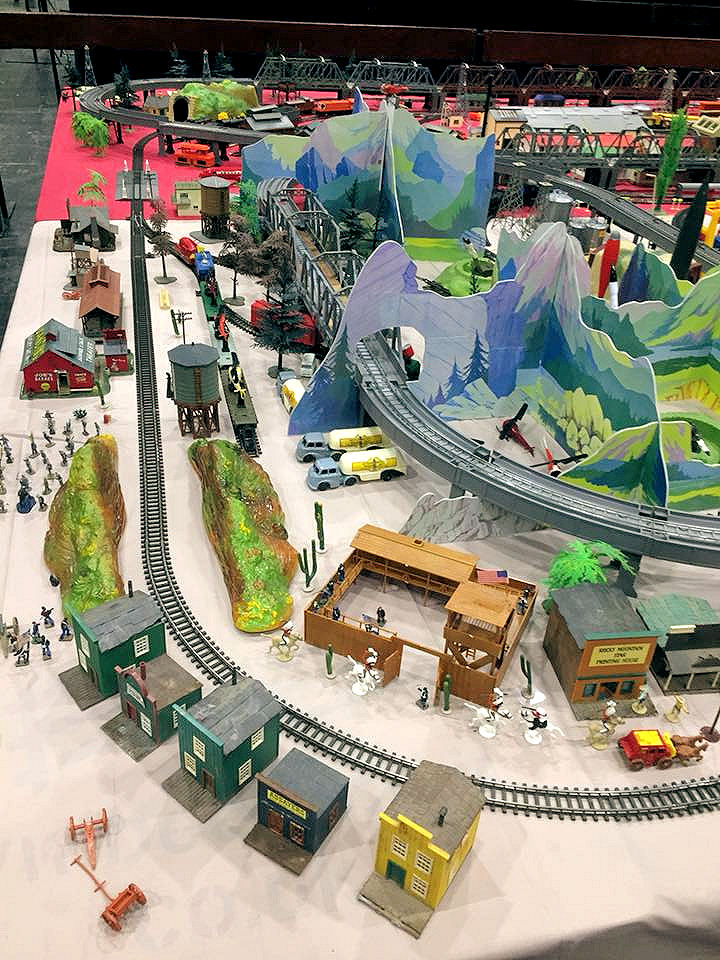 Rolande Allan's goods yard on his Hornby R.997 Pre-formed Layout featuring a variety of Tri-ang Minic 'Push and Go' Models with a military theme