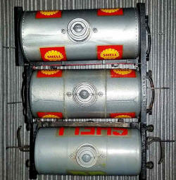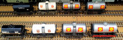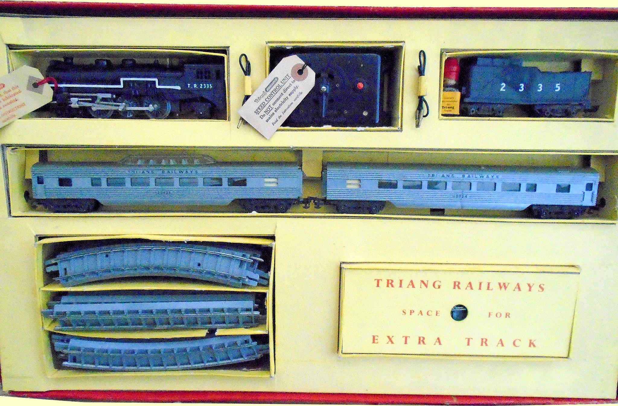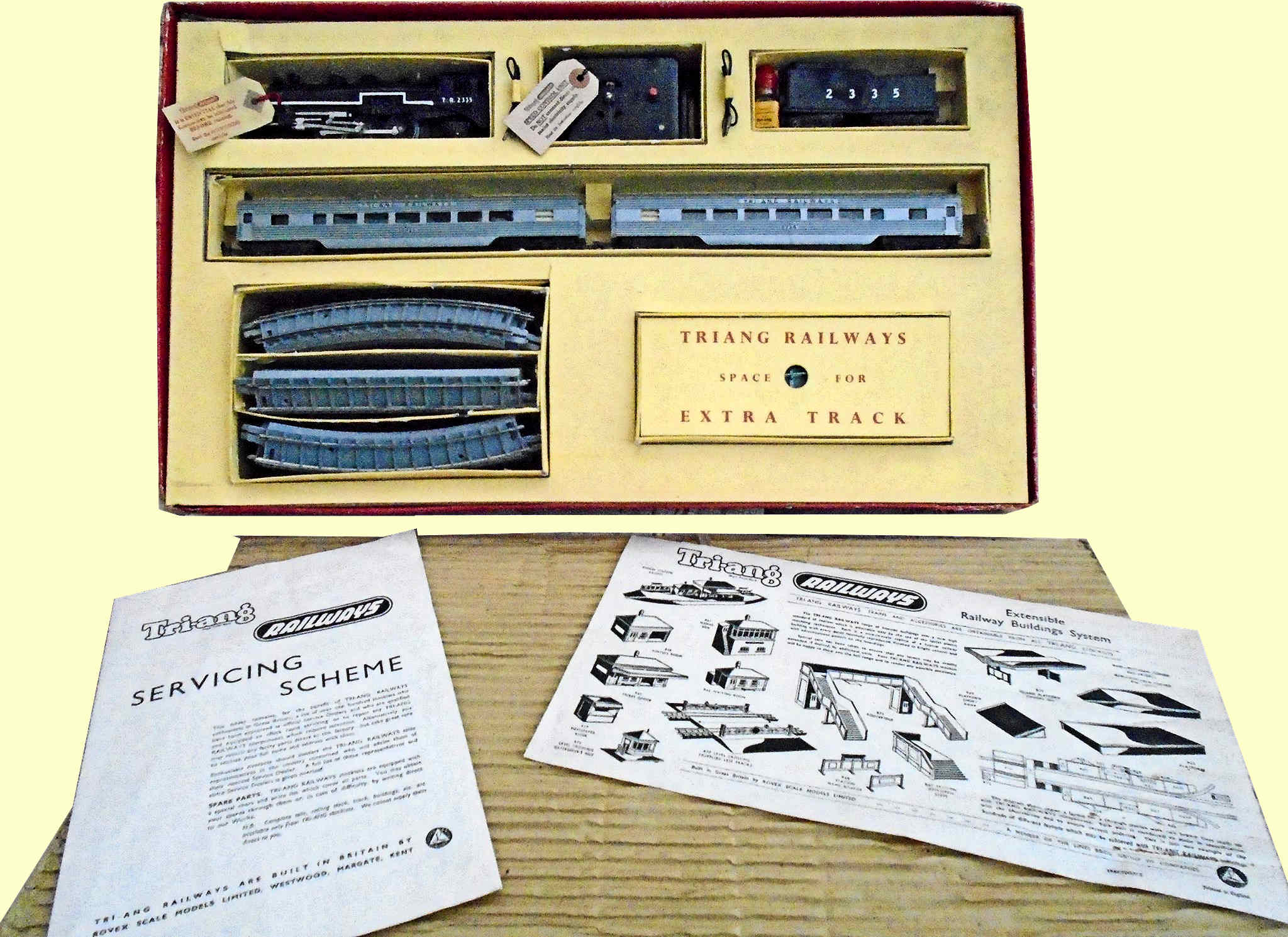 Rolande Allan's goods yard on his Hornby R.997 Pre-formed Layout featuring a variety of Tri-ang Minic 'Push and Go' Models with a military theme