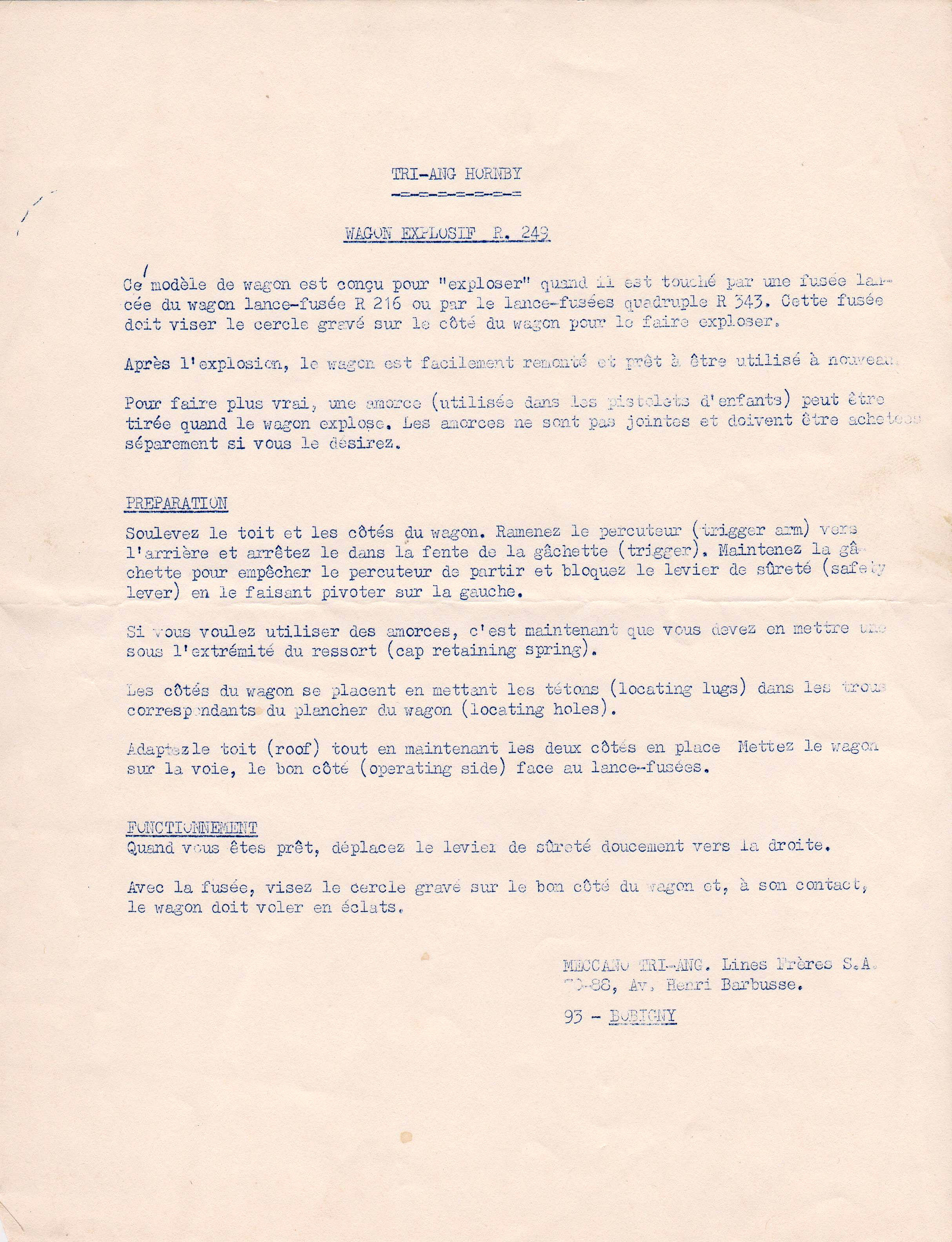 | Dave Coddington's French RS.50F Set with Wagon details in French! Acho straight track, curves missing | ||