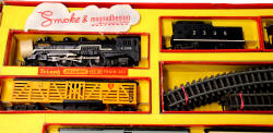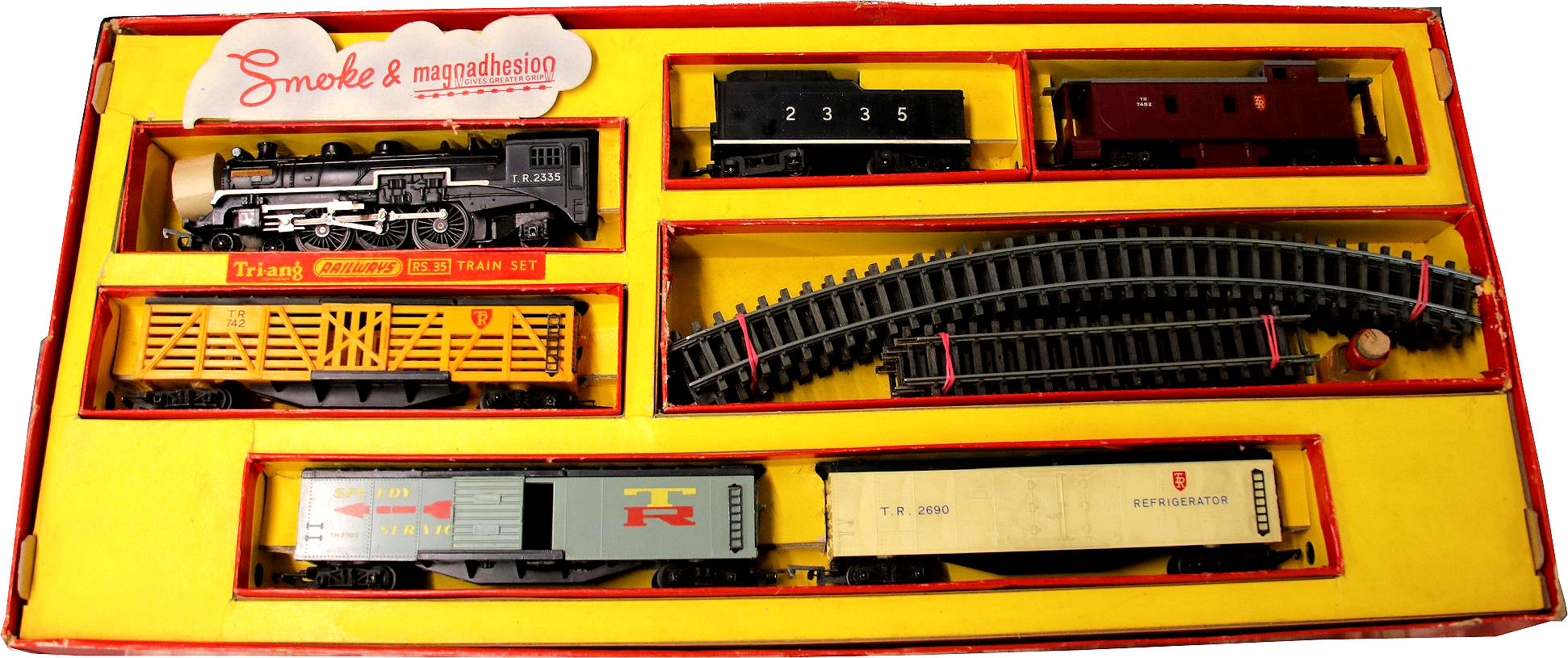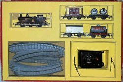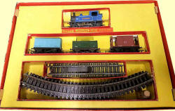 | Peter Fechner has sent me these photos of his RS.G Gamages Set. I assume the G suffix letter stands for the Gamages special set. I have not seen this before. It also contains a loco with Smoke. Thank you Peter | ||