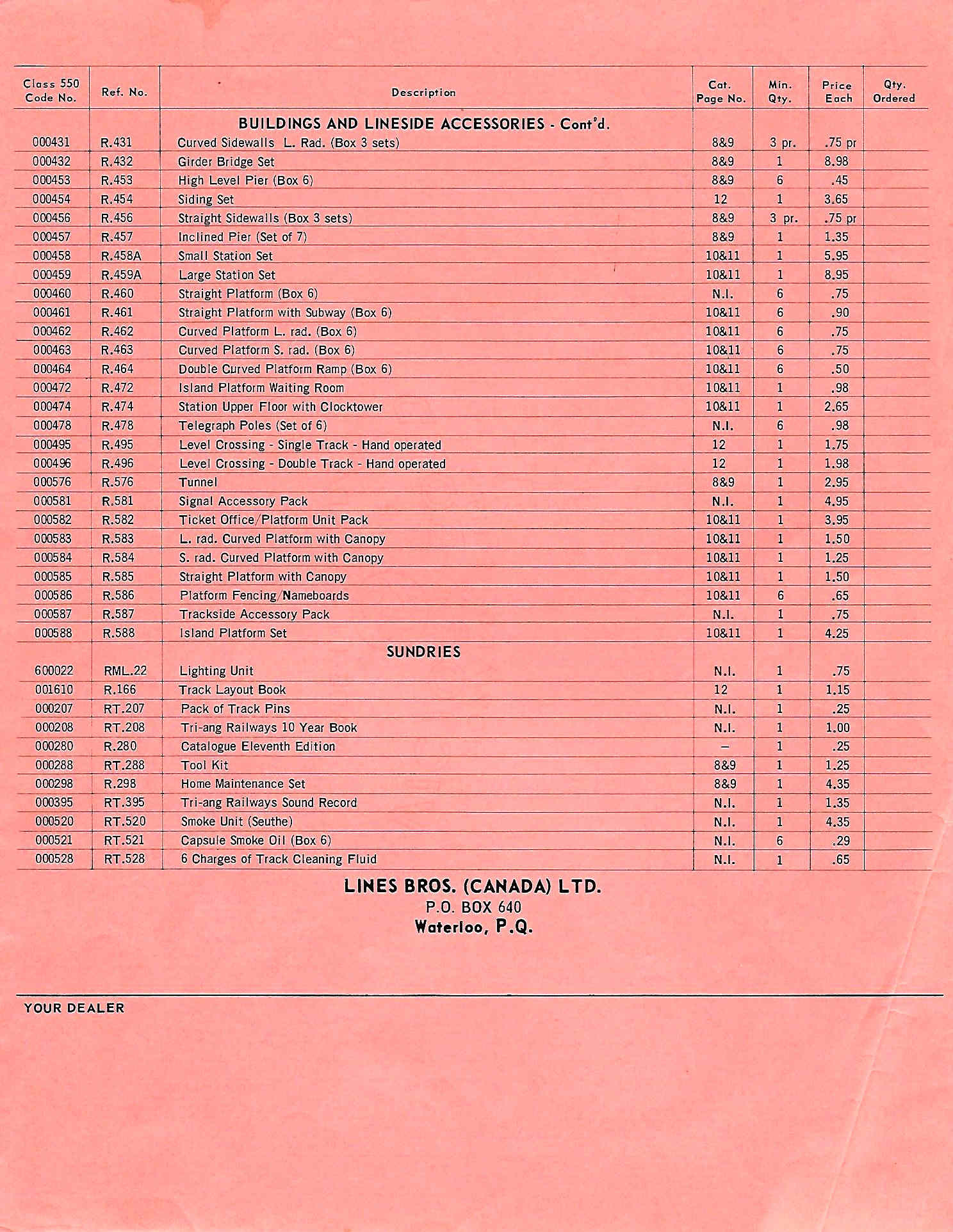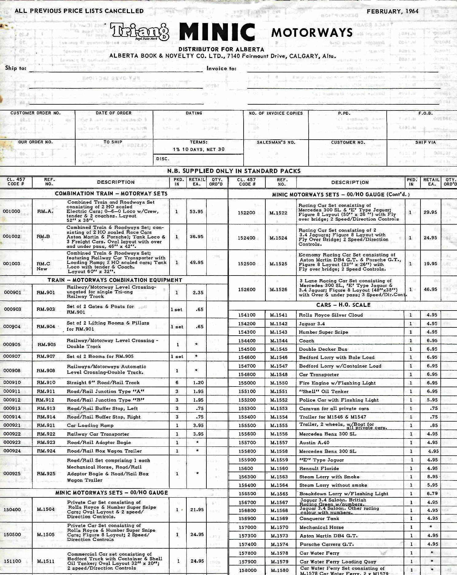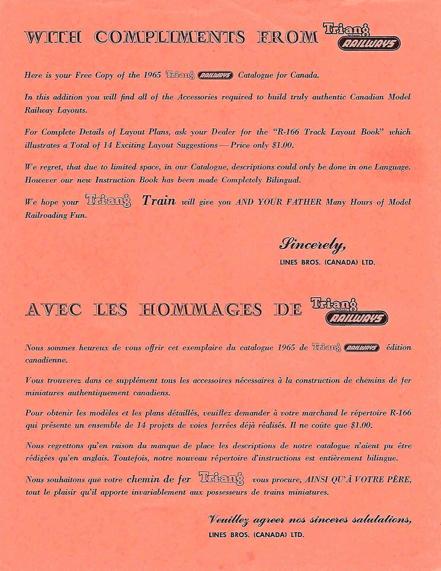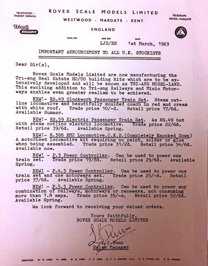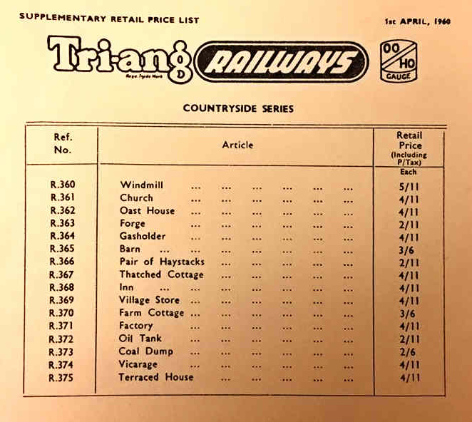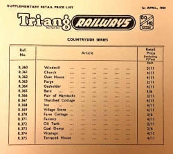 announcement of Tri-ang Model Land and Supl.1960 Countryside list |