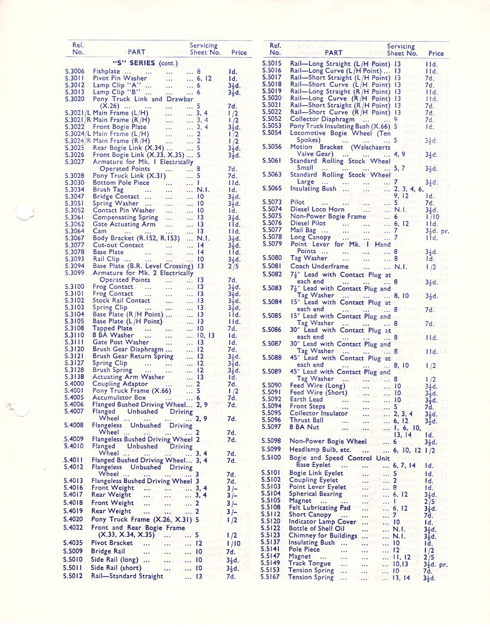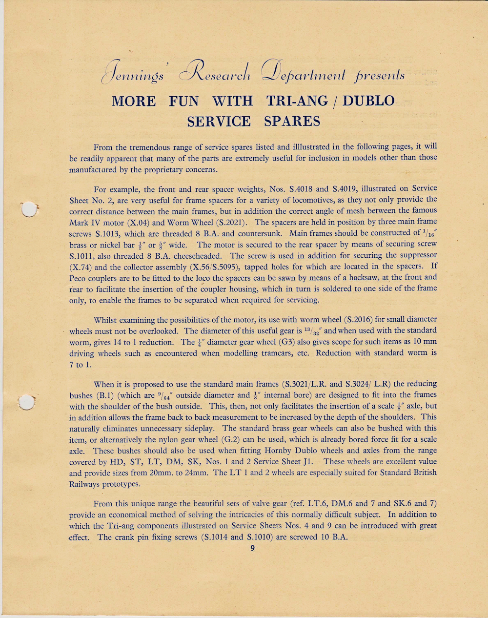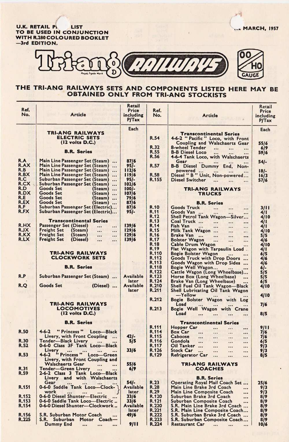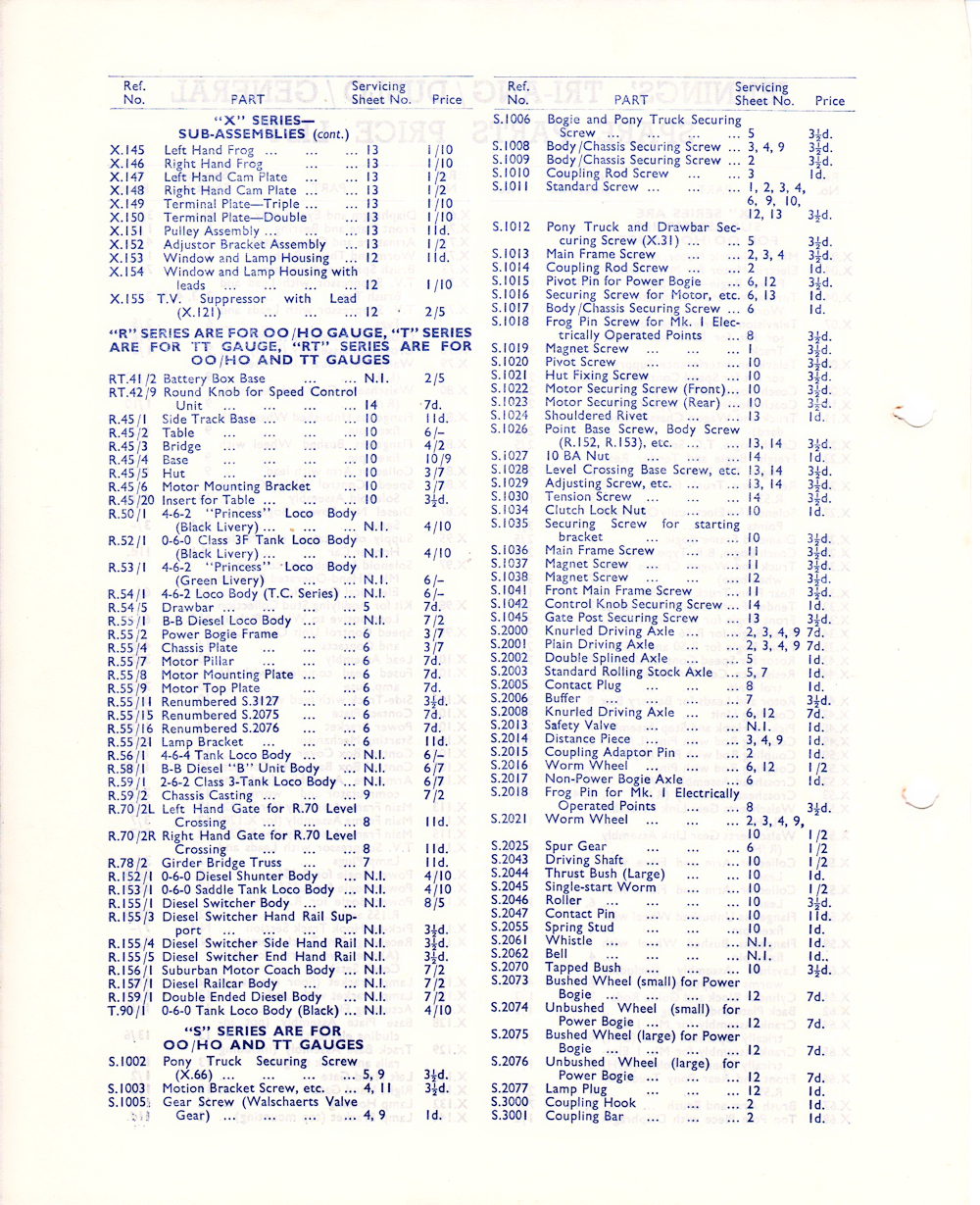 the Jennings Tri-ang/Dublo General Spare Parts Price List. A Tri-ang