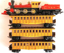 unlined coaches and the caboose have repro chimneys, the lined coaches