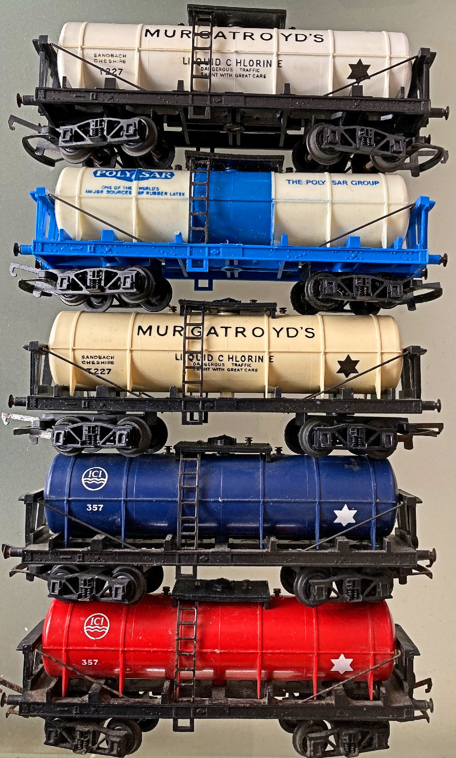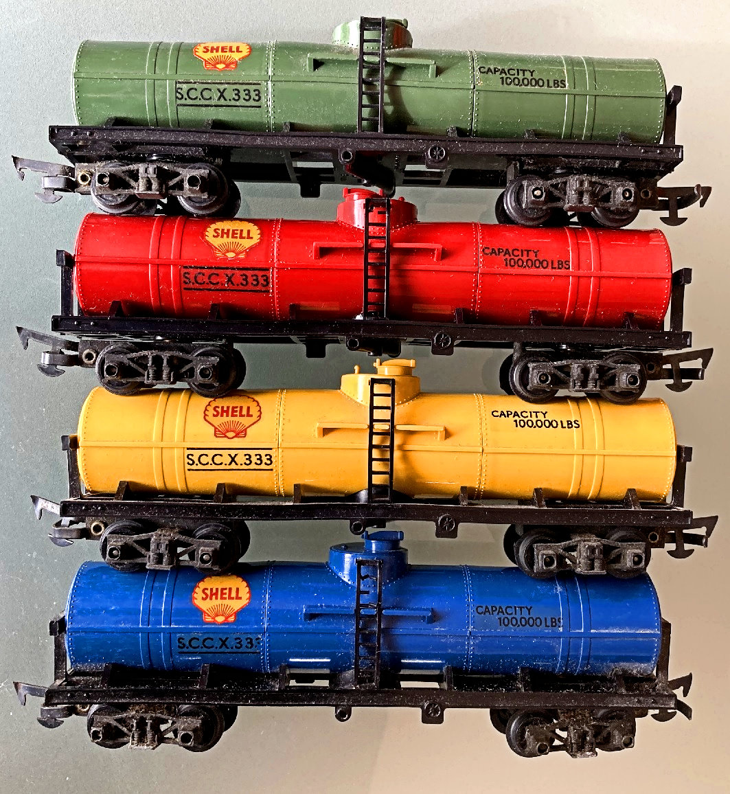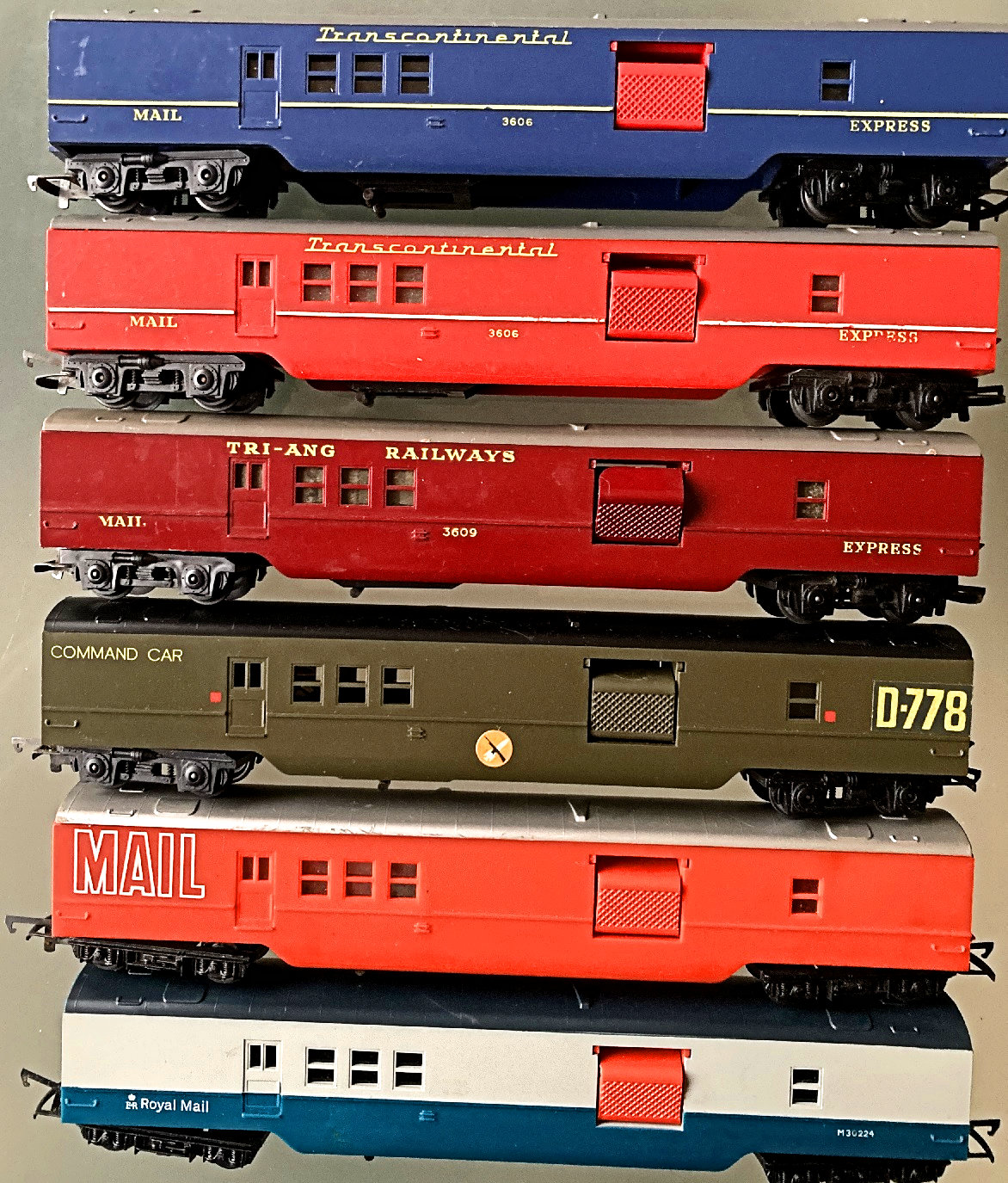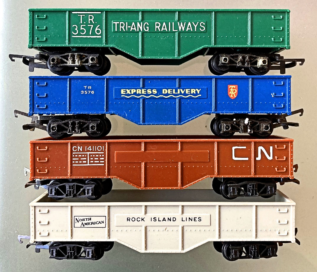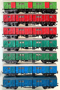 Wagons. The 4 original colours. The top two yellow ones are a different