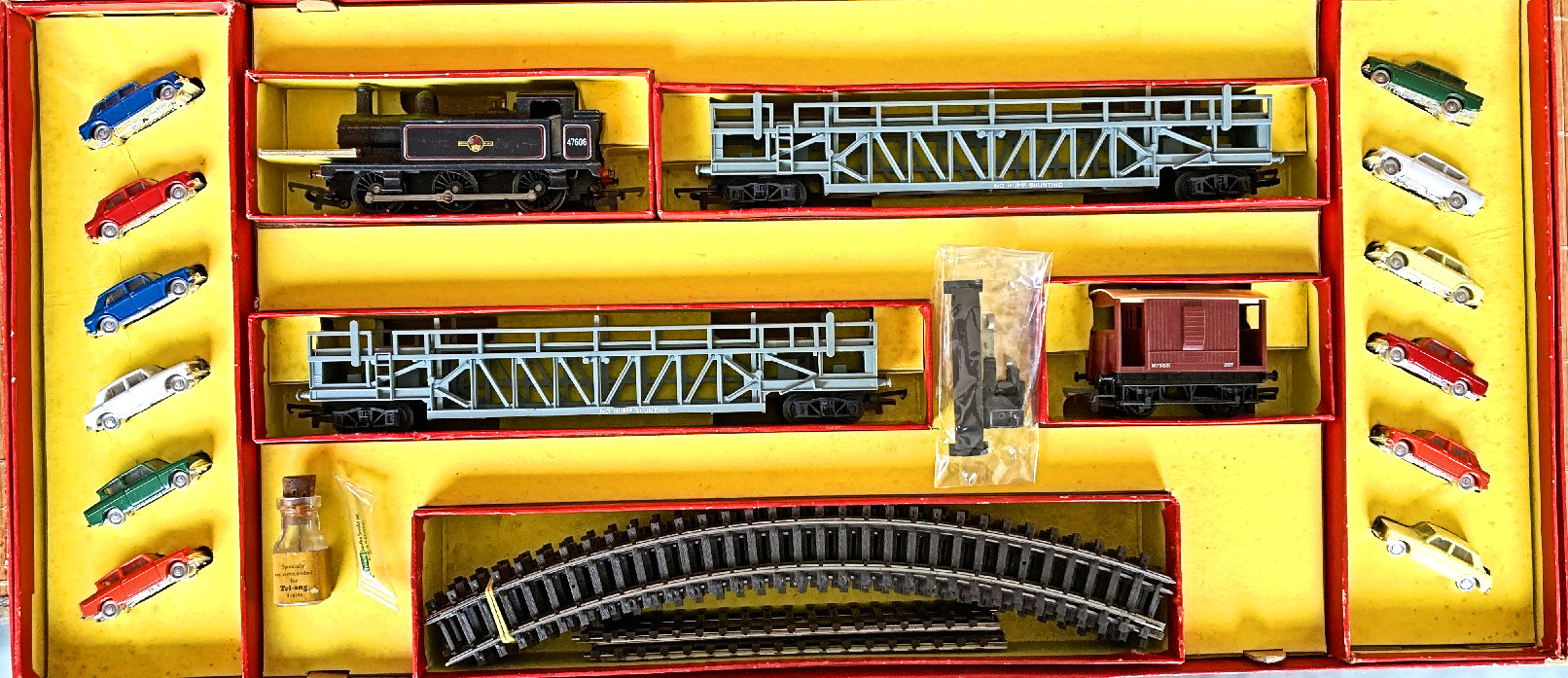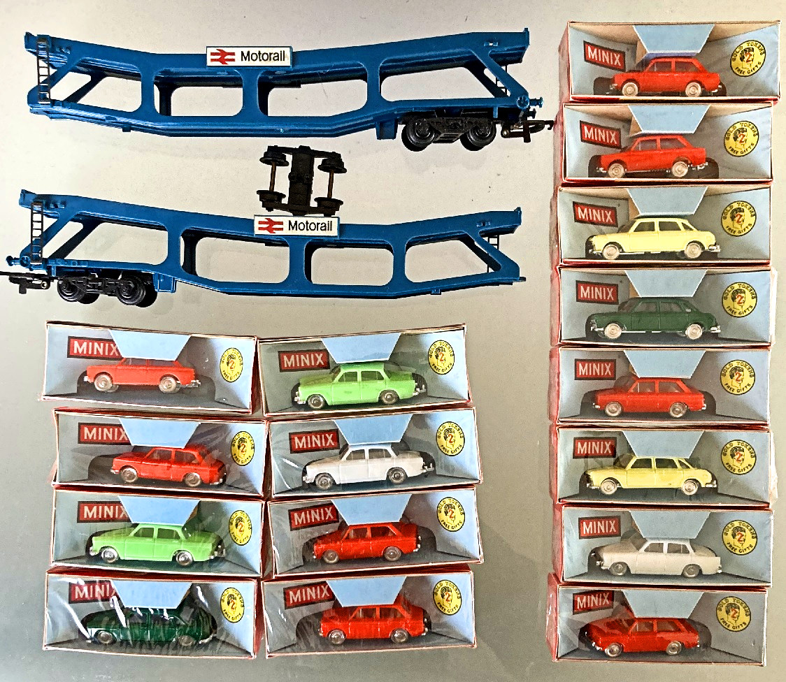 Carrier with detachable bogie and 16 Minix Cars |