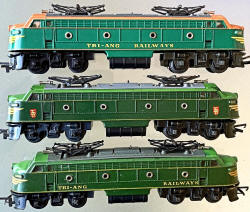 The 3 versions of the Green Tri-ang EM2,