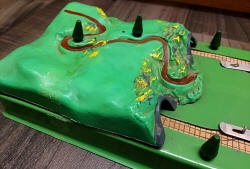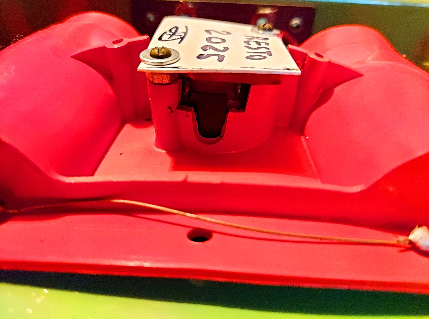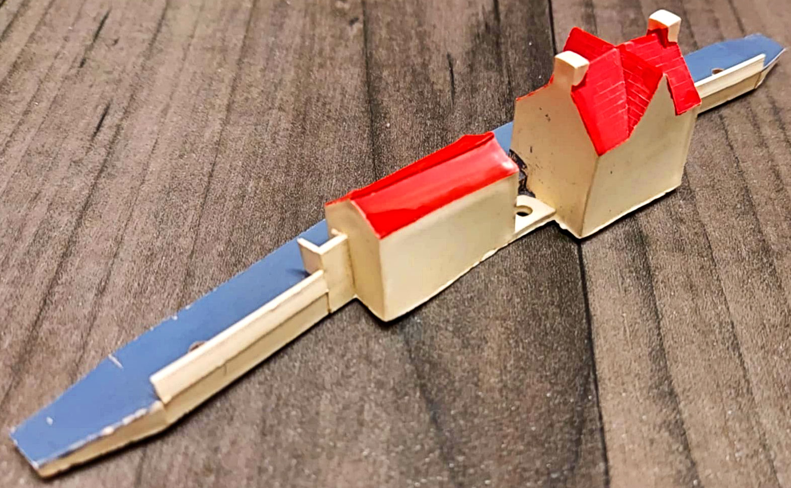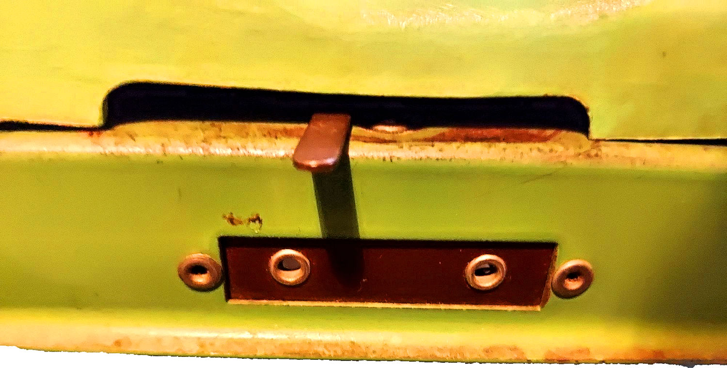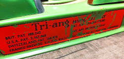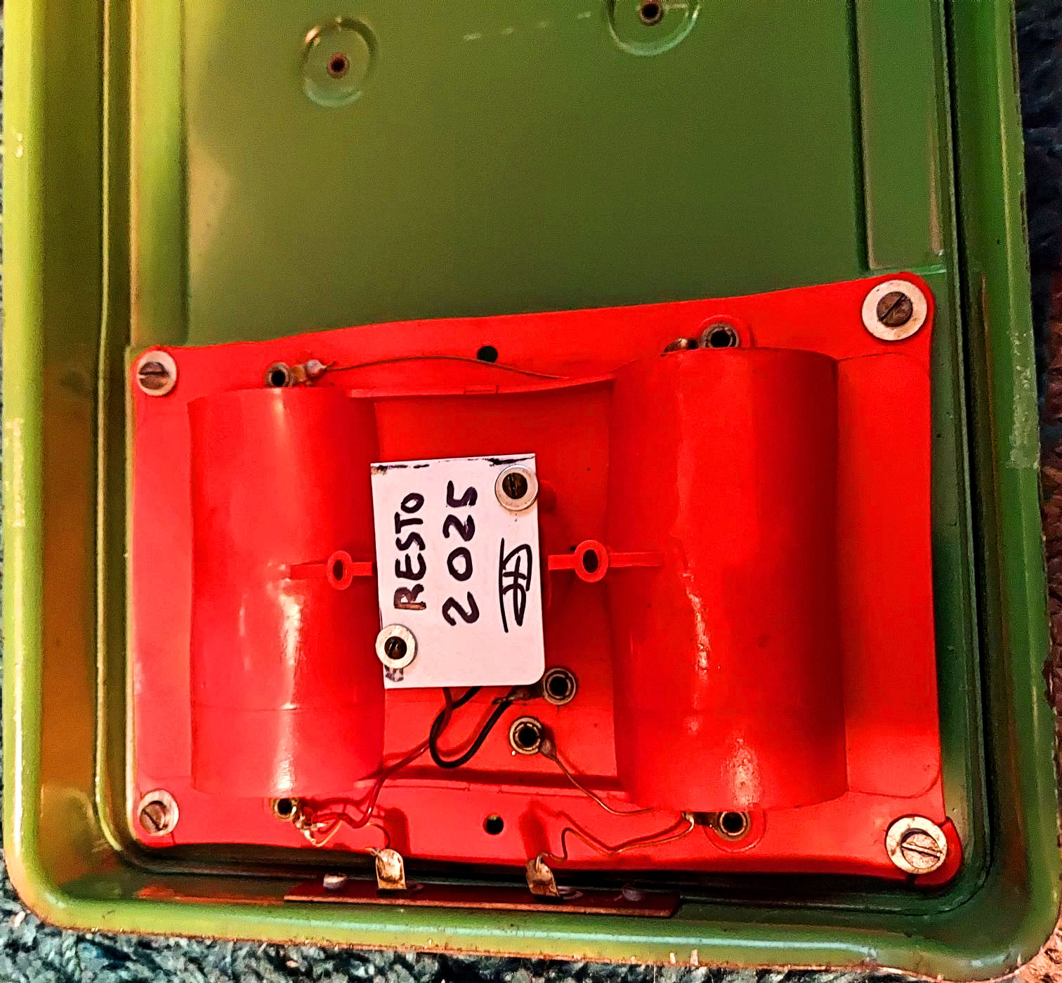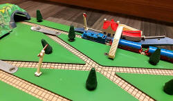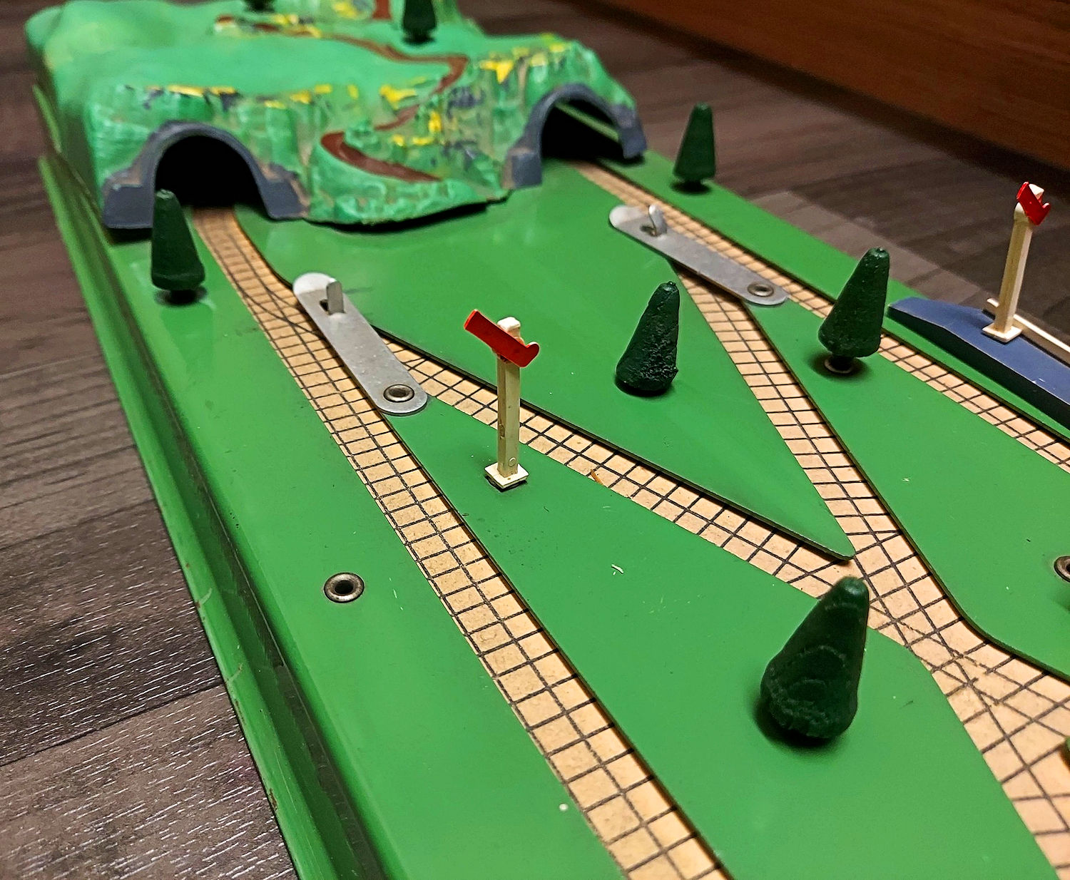 James has kinly sent me the photographs of this interesting item. It called itself an Electric Railway but in reality it had a very strange sort of motion power. The stock was not driven but the paper track in the metal frame vibrated side to side by an eccentric cam on the motor and the brushes under the stock shifted the items in one direction!! Note, the brushes all have to be facing the same way otherwise the stock fights for the direction of travel!! |