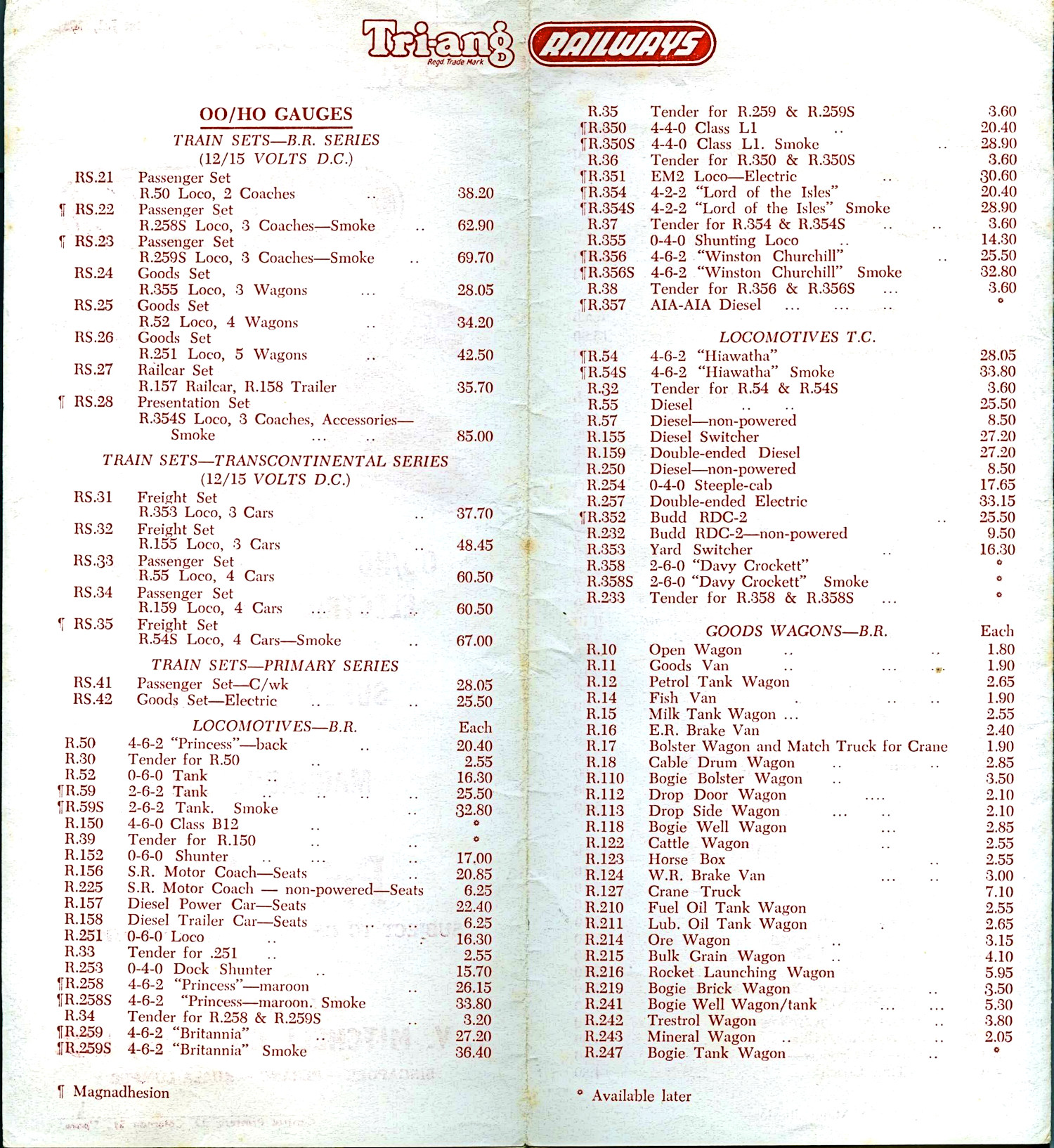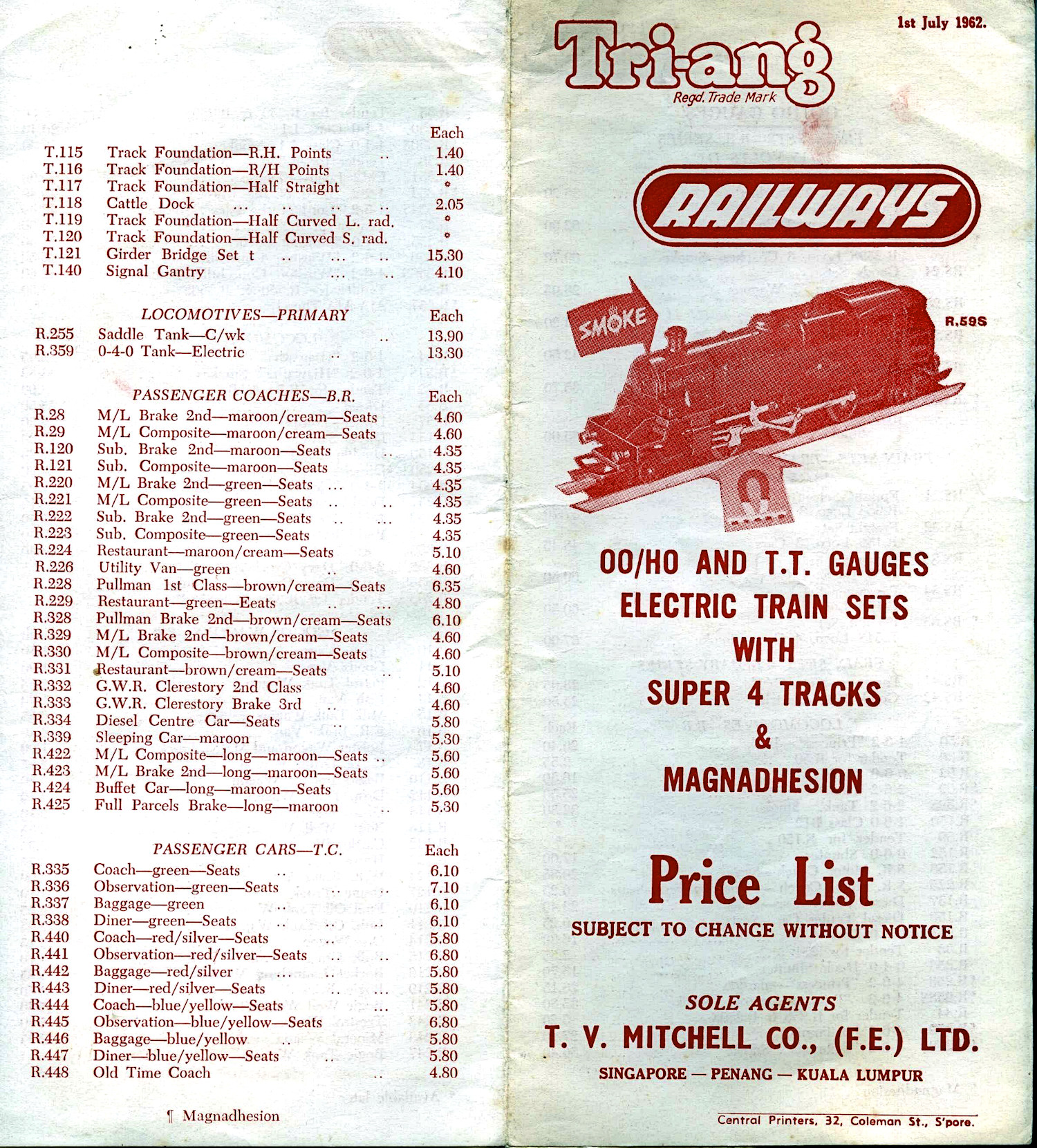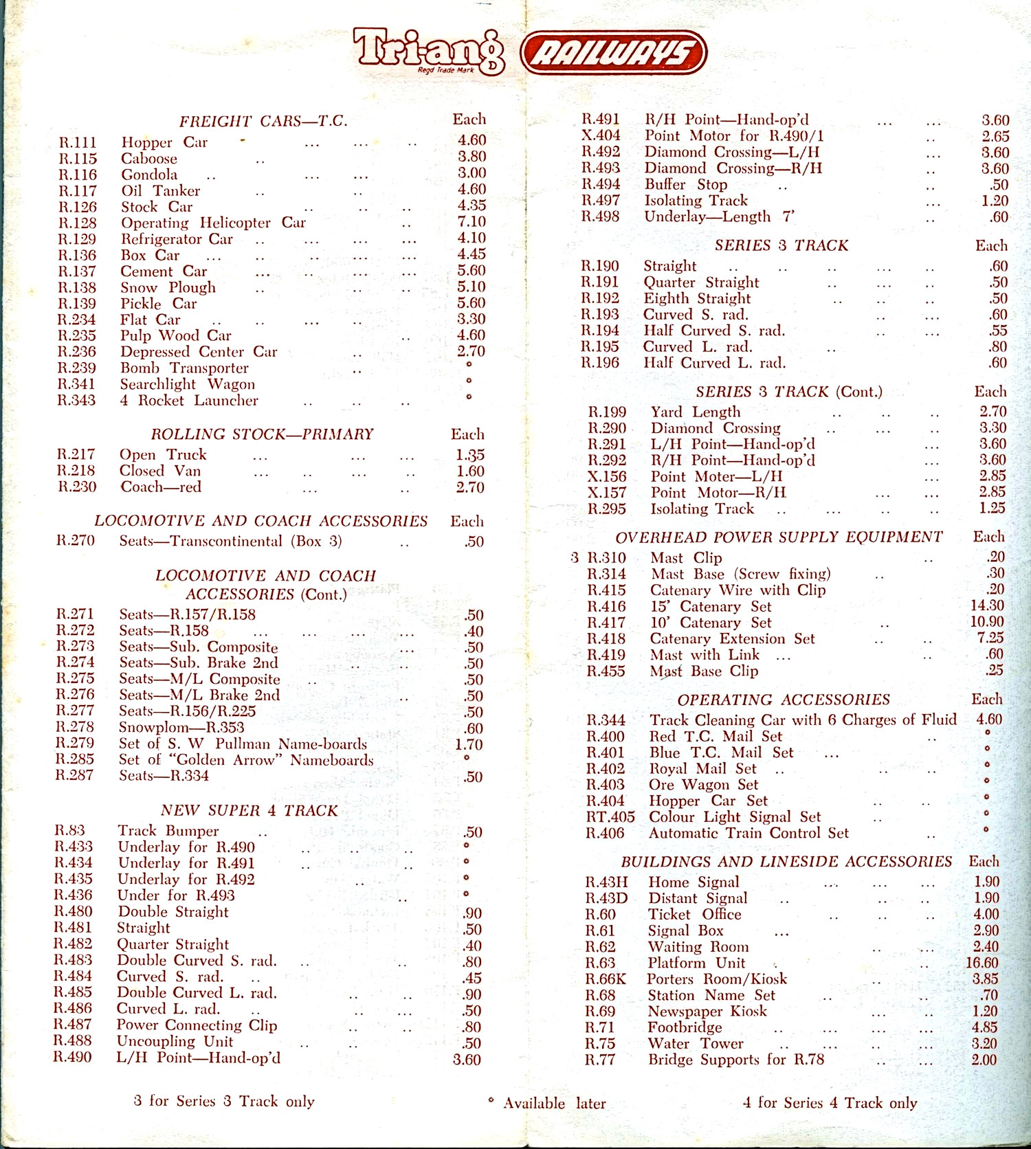 Dave has kindly sent me scans of some of his early overseas Tri-ang Price lists. Who knew that so many contries had their own lists.