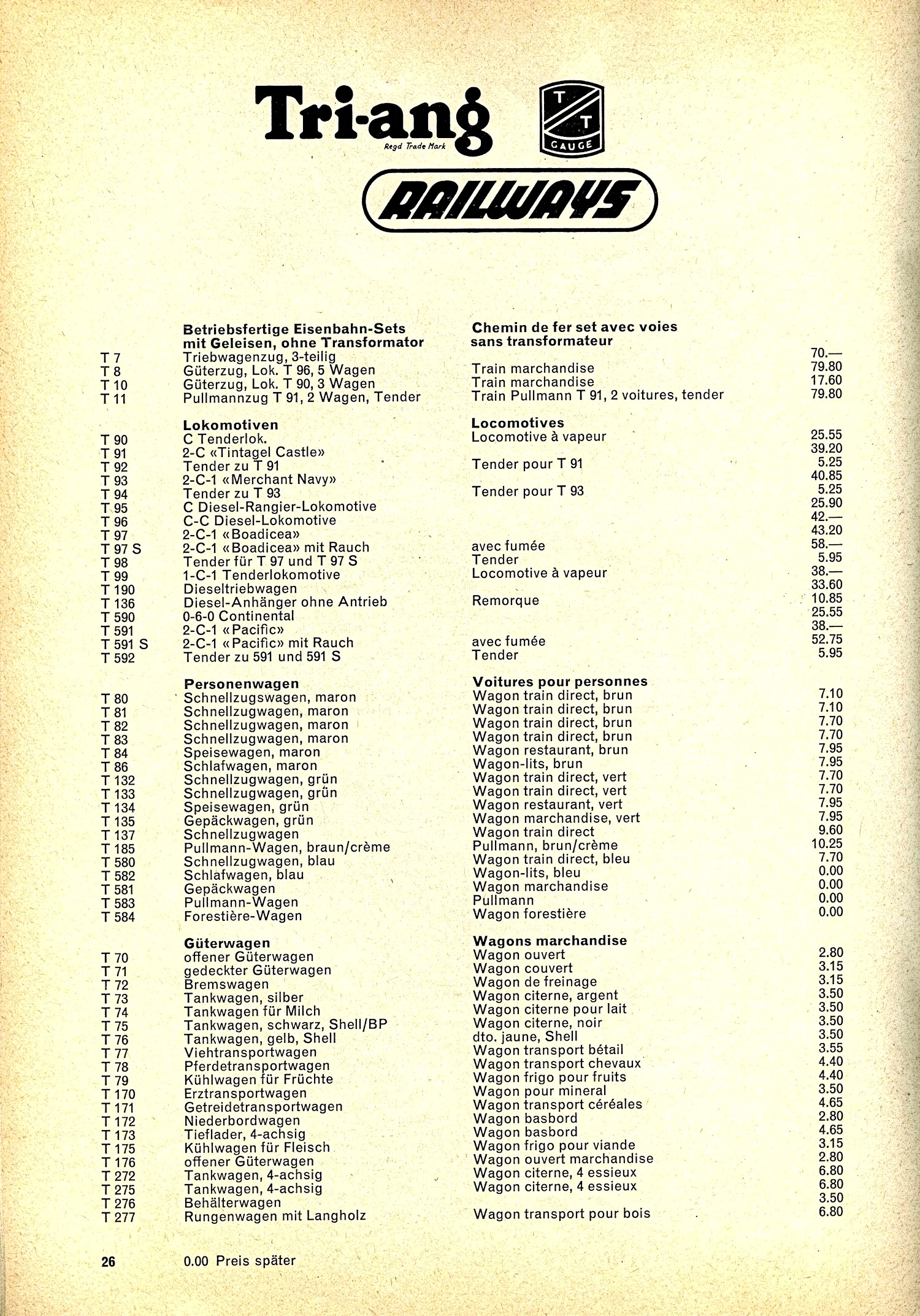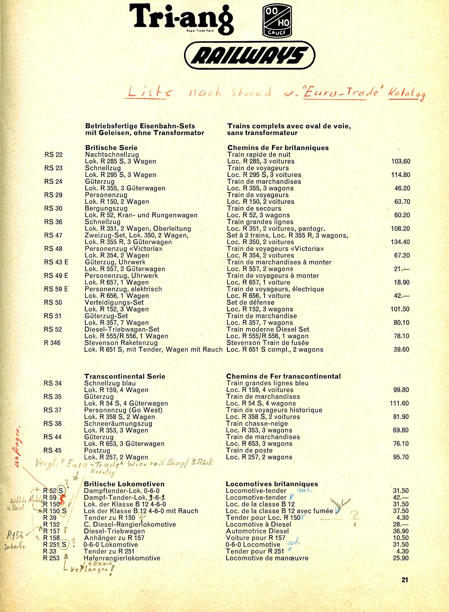 Dave has kindly sent me scans of some of his early overseas Tri-ang Price lists. Who knew that so many contries had their own lists.