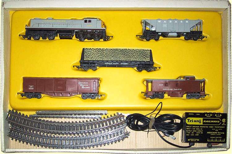 Canadian Pacific Diesel Freight Set TS902. CP Switcher, Wabash cement car, three CP freight cars. Oval of Series 4 track and Power Controller.