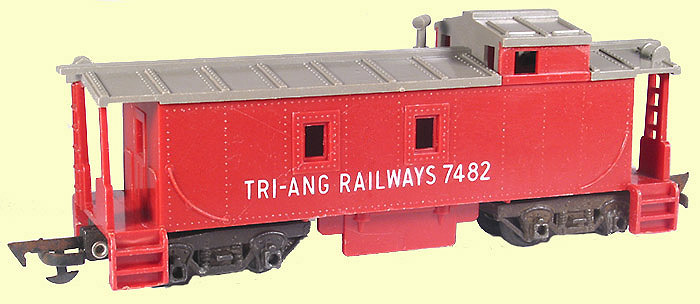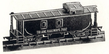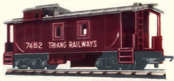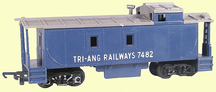 This version introduced the blue body colour in 1962, but although the catalogues show it lettered TransAustralia, it is always found with white Tri-ang Railways lettering. This version has metal bogies as shown. Used in R4Z sets and also available separately.