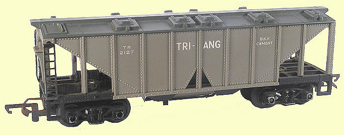 The models were fitted with Australian diecast metal archbar bogies with MkIII couplers, sleeved wheels and open bearings. The body parts were imported from the UK in finished form and were the same as those used in the UK TC range at the time, complete with unloading mechanism. All models were assembled from the mid grey UK body with Tri-ang lettering.