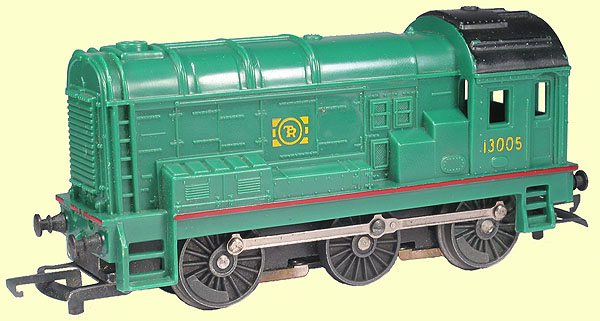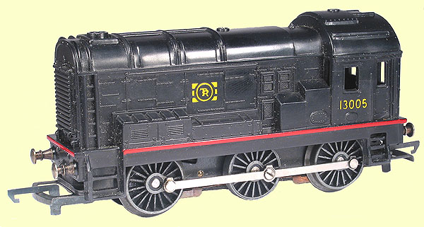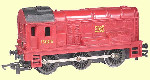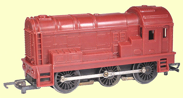 This red version of the Moldex R152A has an otherwise identical body to the red version of R256A, but it has not been drilled for the clockwork mechanism. This example has an 0-6-0 chassis with see through drivers and is a later model, dating to some time in the period 1964-1967.