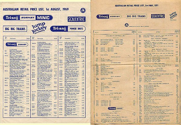 1971 (above right) The last Moldex pricelist and also the last Tri-ang list as the Moldex factory closed and Lines Bros. collapsed the same year. Includes the RS4DA, RS4FA and RS24XA sets, which were the last Moldex sets