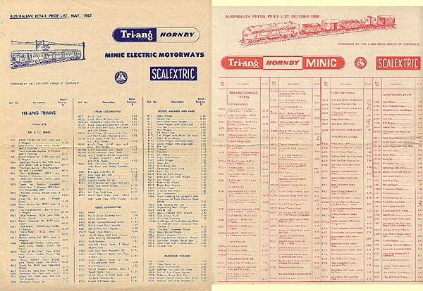 1968 (above right) With high inflation in Australia, two lists were issued in 1968. August printed in green and October printed in red. The illustration was changed to the R4FA set, which was assembled from imported components by this time.