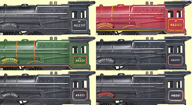 “Princess Victoria” should have been numbered 46205, but again the original lettering tool was never updated. The 1962/3 version of the black Princess with a “Princess Elizabeth” nameplate is rare and may be a small batch printed by mistake, rather than an attempt to match the name to the number on the black locomotive.