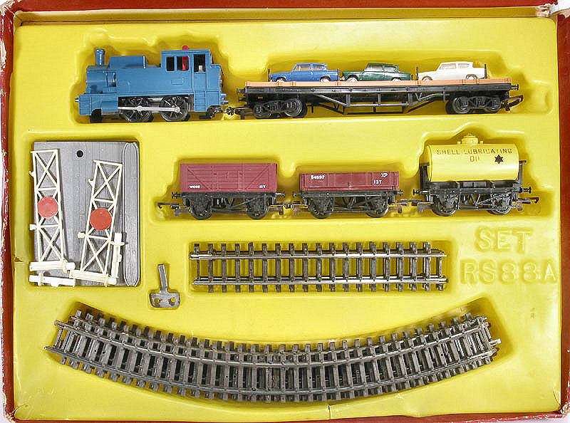 This set was illustrated in the 1968 Moldex catalogue and was available for one year only. The loco and rolling stock were made in the UK , but the track is Moldex made Super 4.