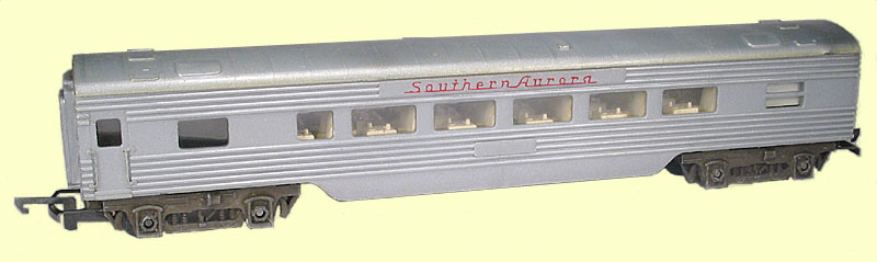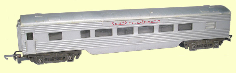 The Southern Aurora was an overnight sleeping train that ran between Melbourne and Sydney. It was introduced in 1962 when the VR standard gauge line was opened between Melbourne and the NSW border at Albury. The short TC cars bore little resemblance to the prototype carriages, which were a stainless steel Budd design, similar to the 2nd series Tri-ang TC cars.