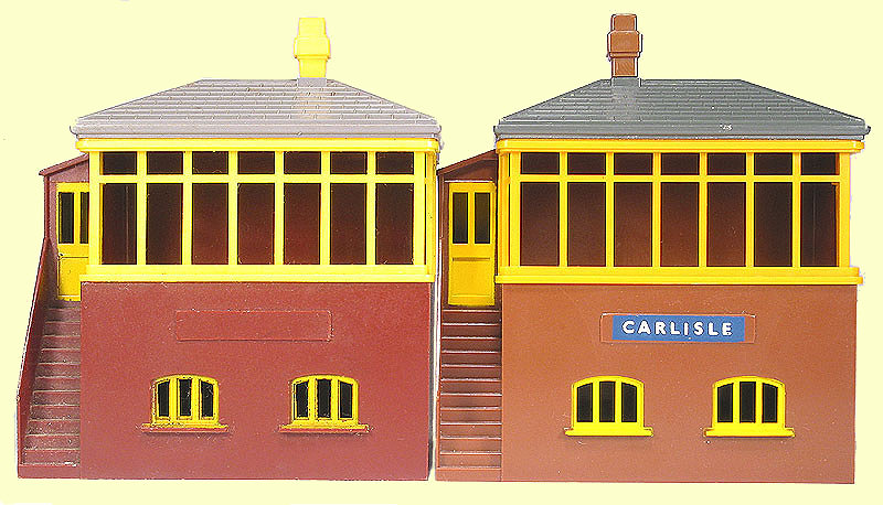 Australian made buildings were moulded in lighter shades of yellow and grey than UK models and the building walls were maroon, rather than brown. The photograph illustrates the differences between an Australian and a UK signal box.