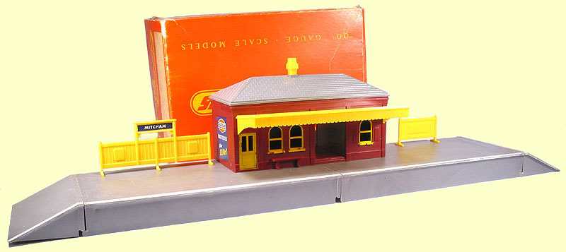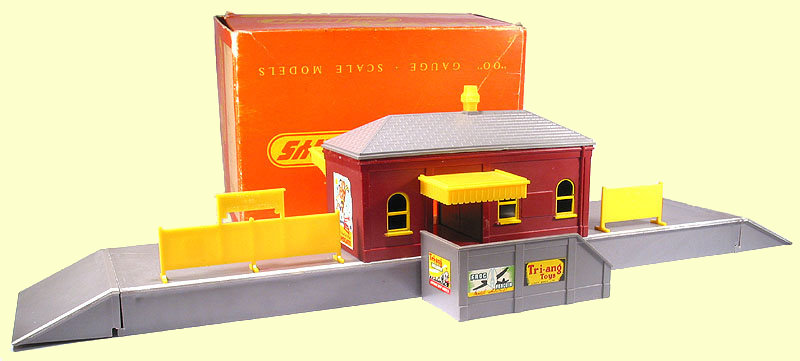 Based on the UK made R80 small station set, this set was introduced in 1960 using all Australian made parts and was withdrawn in 1962 with the introduction of Super 4 track. Unlike the UK set, it included the station name boards and had a different platform shape. This particular one has been named Mitcham, using the printed sheet of names supplied with the R68 nameboards.