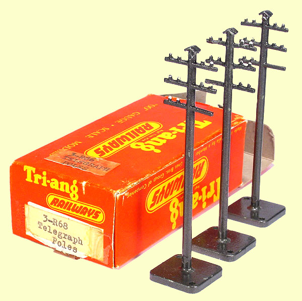 Three R86 Telegraph Poles packaged in an Australian small wagon box with the typed labels sometimes used by Moldex.