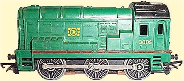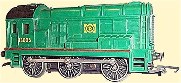 Australian produced Diesel Shunter. This model was different from the UK version with a taller cab and "rounded" cab doors. The green colour was also unusual