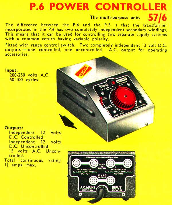 P6 controller had two independent 12v outputs, one controlled the other uncontrolled. These were required to run conventionally powered and overhead pick-up locomotives together.