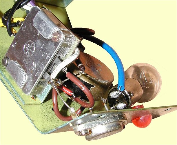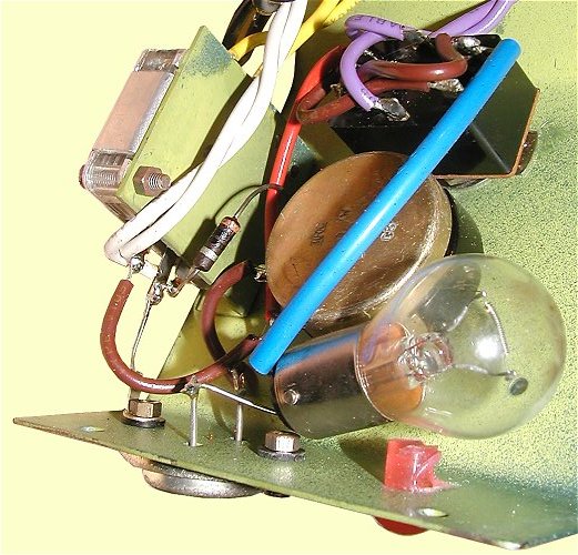 The circuit used a car light bulb (soldered in!!) to indicate short circuits and limit the current.