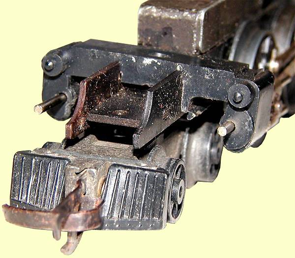 The two bogies, which were originally designed for the TC Pacific loco, both carried plastic "cow catchers"