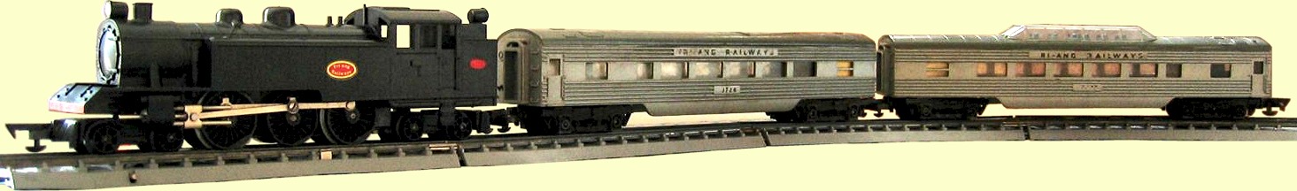 The R.SX A set is known to have been produced, but one of them is yet to surface to be photographed. It contained a R.56 Baltic Tank loco, a TC R.26 coach and an R.27 TC Vista Dome Coach. An oval of Standard Track and a R.42 Circuit Controller. All items were Manufactured in South Africa, apart from the Loco Chassis and possibly the Coach Bogies.