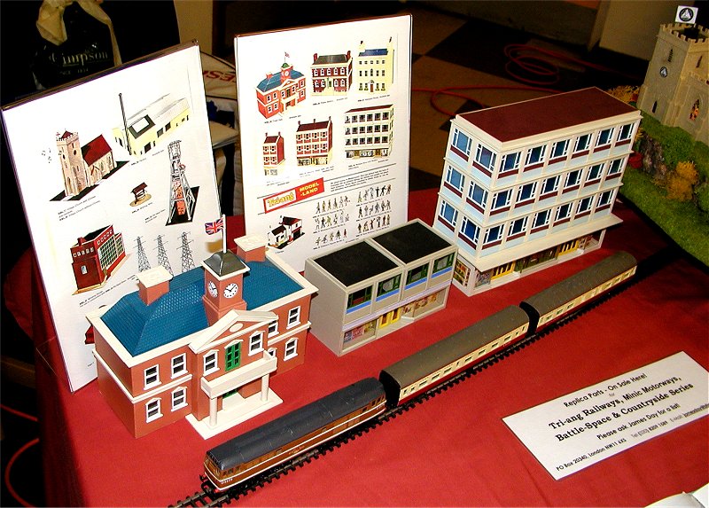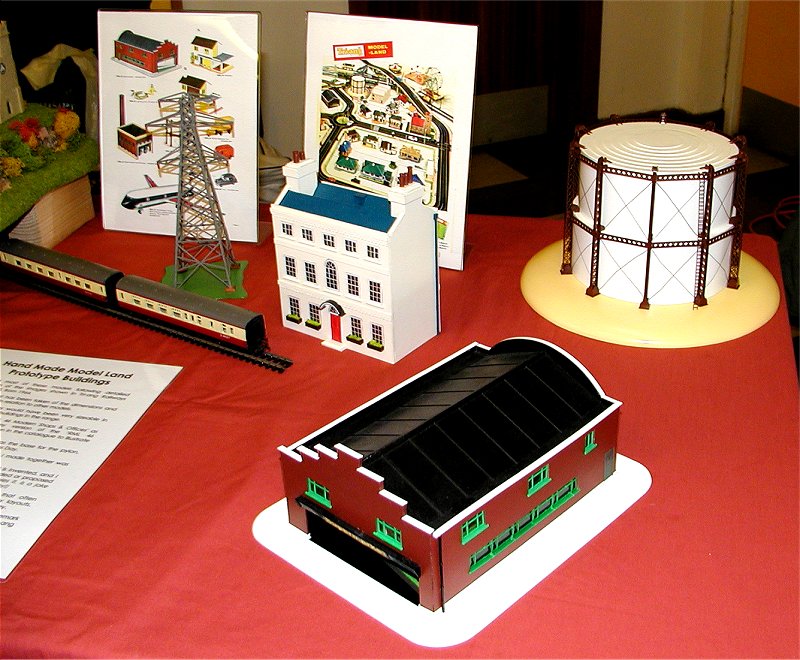 A display of Paul Rees' handmade 'Neverwazz' Model-Land buildings.