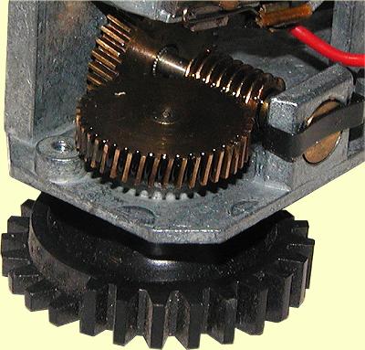 This meant that when the motor was powered and the Bridge rotating, it paused at each of the three outlet tracks whilst the pinion continued rotating half a turn. If the power was removed during this period, the Turntable remained at this track.