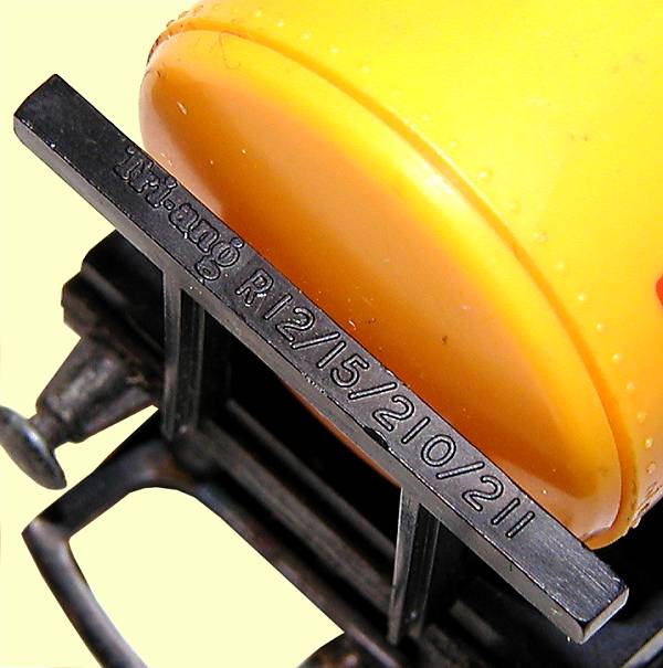 Early tank cradle, end supports, had information molded into them, on the later version these were plain.