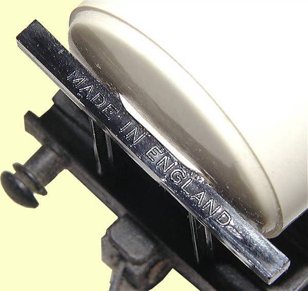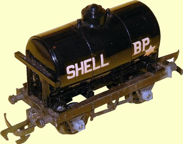The Tank consisted of three cylindrical sections, two identical end sections and one central piece which carried the filler. They plugged together. These early tank cradles had end supports with information molded into them.