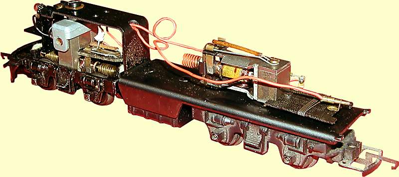The XO4 motor seems to be fed via a resistance mat to reduce the voltage and hence run it at a lower than normal speed for the voltage supplied to the track.