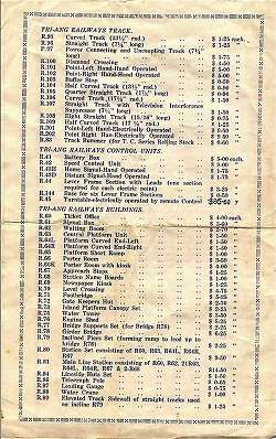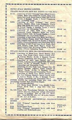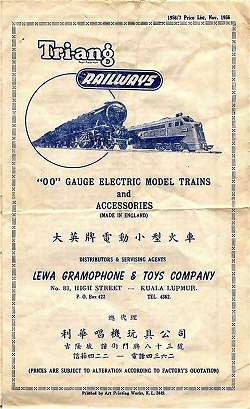 This Catalogue gives a very good idea of the Tri-ang items available in 1956. To find that the range was available in Kuala Lupmur with its own local catalogue was a big surprise to the author and shows the early and wide spread of the Tri-ang Railways range. Where else one wonders were similar catalogues produced?