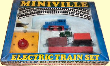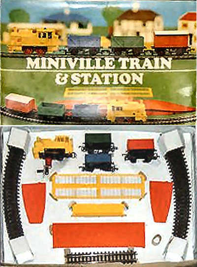 To increase their market and availability, Rovex introduced the Miniville range. They were aimed at the low price market and were made up with a variety of already available items, from the OO, TT, Model Land and Minix ranges, sometimes simplified and in unusual colours.