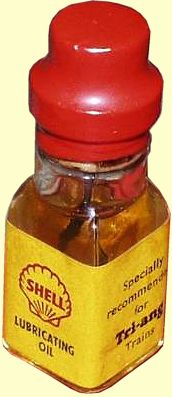 A bottle of Shell oil was included with many of the Train Sets. It was supposedly provided free to Tri-ang by Shell as a "payment" to them for advertising Shell on their wagons.