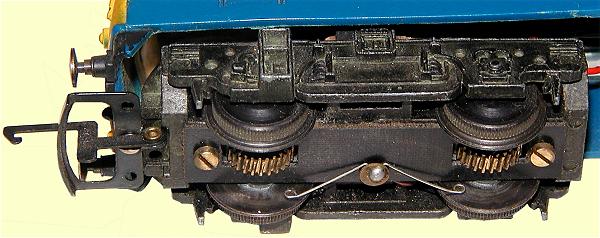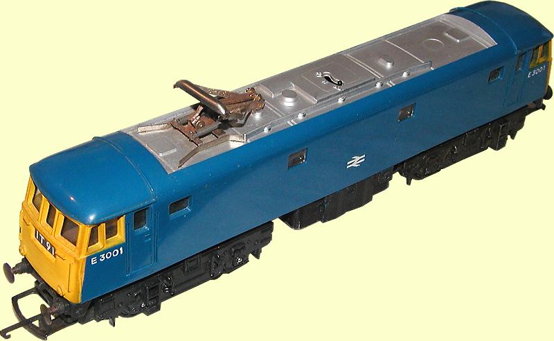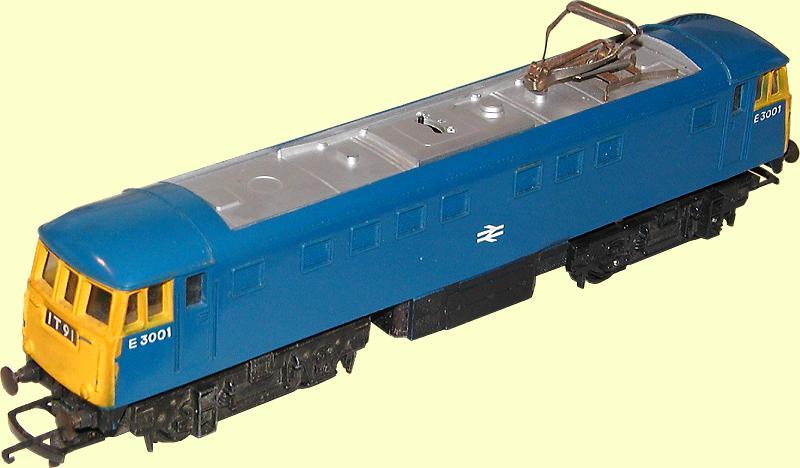 Later single Pantograph livery with, roof centre in silver, cab roof in blue and full cab end in yellow.