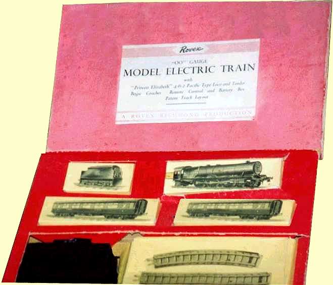 In 1950, Rovex Plastics Limited, of Richmond, Surrey, produced a range of model trains exclusively for Marks and Spencer using plastic (cellulose acetate) moulded bodies .The price of the train set was £2 17s 6d which was about half the price of anything comparable on the market.