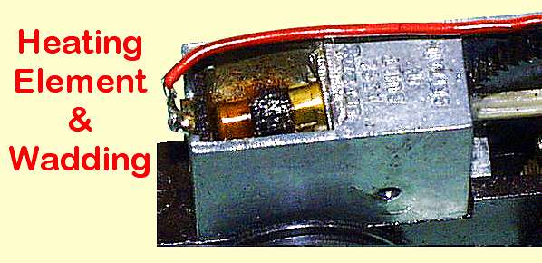 The element was heated by the power picked up by the loco. Smoke Oil was inserted down the chimney through the hole on the cover plate and was retained by the wadding on which the element sat. Sufficient power was needed to heat the element, this could only be achieved by running the loco fairly fast.