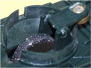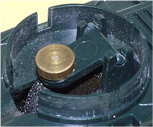 Hinged carrier with brass holder carrying a flint. This rested on the stone flywheel and produced sparks when the tank was "revved up" !!